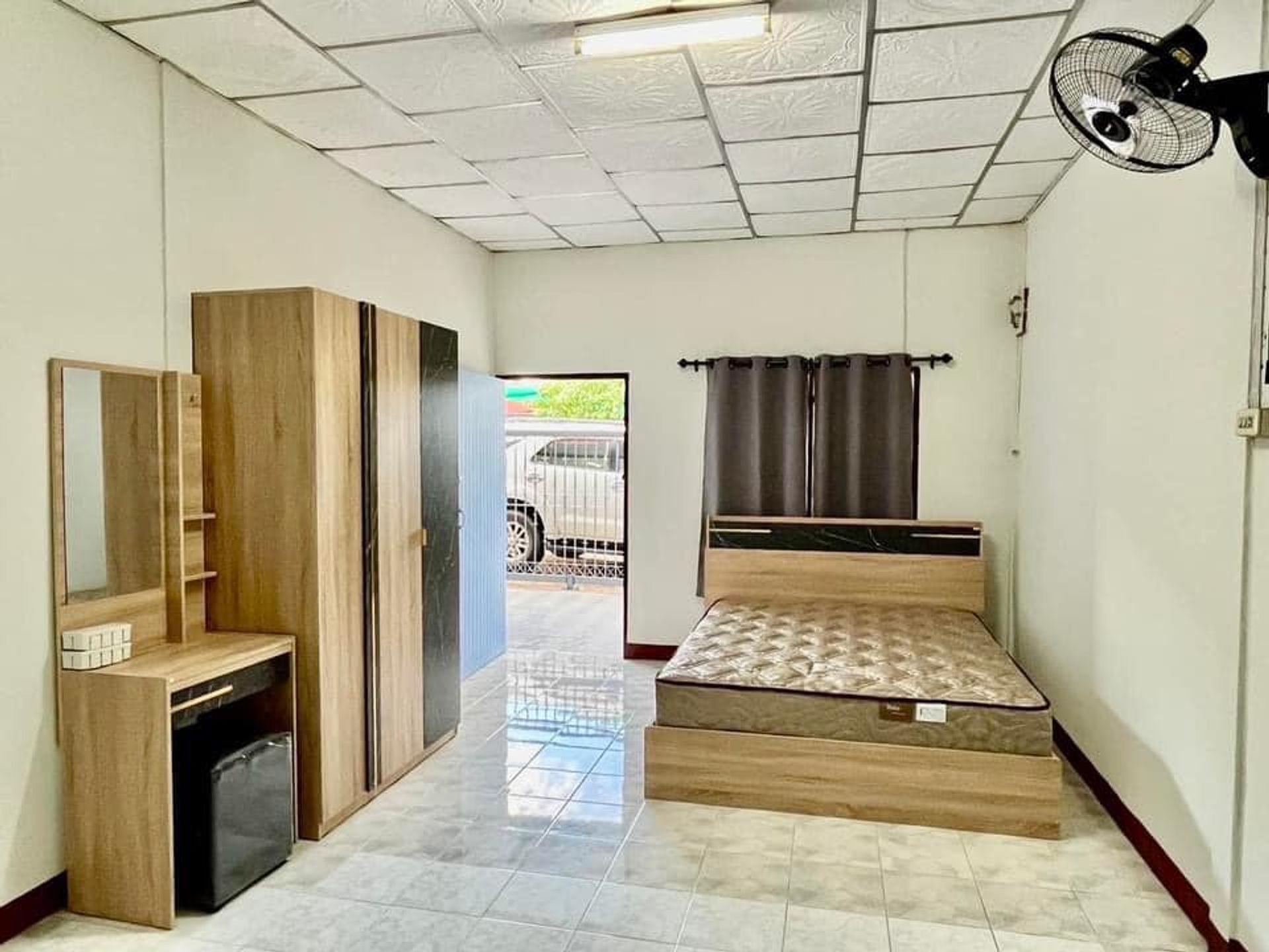 1 ห้องนอน 1 ห้องน้ำ 1 ห้องครัว มีพื้นที่จอดรถมอเตอร์ไซค์ด้านหน้าเฉพาะหลัง เป็นสัดส่วน มีรั้วและประตูเหล็ก ผู้เช่าอยู่ได้อย่างปลอดภัยเหมือนอยู่บ้านตัวเอง