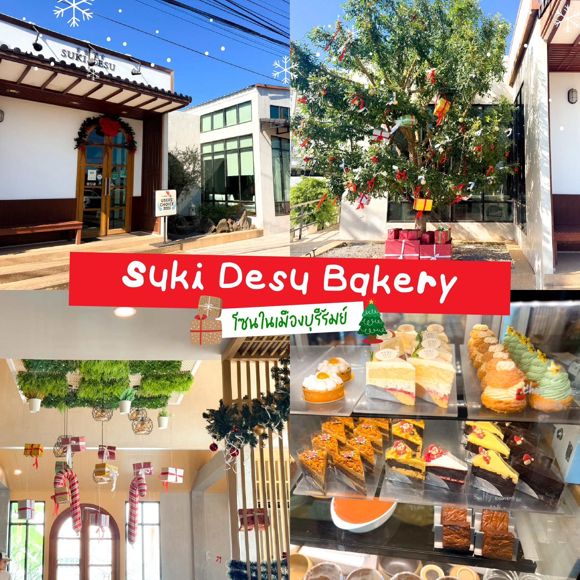 คาเฟ่สายมัทฉะในบุรีรัมย์ก็ต้อง Suki Desu Bakery ปีนี้ที่ร้านมาในธีม Christmas treasure! เก็บแสตมป์ในช่วงคริสมาสต์ เพื่อนำมาแลกสมบัติคริสต์มาส รับส่วนลดสูงสุดถึง 450 บาท นอกจากจะได้ชิมเครื่องดื่มและขนมอร่อยๆ ที่นี่ก็ยังมีจุดจำหน่ายผลิตภํณฑืจากนมทั้ง โยเกิร์ต นมพาสเจอร์ไรซ์ และ ขนมปัง ให้ได้ส่งต่อความอร่อยไปฝากคนที่บ้านได้อีกด้วย ภายในร้านมีที่นั่งเยอะ บรรยากาศคลีนๆ มินิมอล นั่งทำงานได้เพลินๆ ใครหาที่นั่งทำงานที่ให้กลิ่นอายคริสต์มาสปักหมุดมาที่นี่เลย
