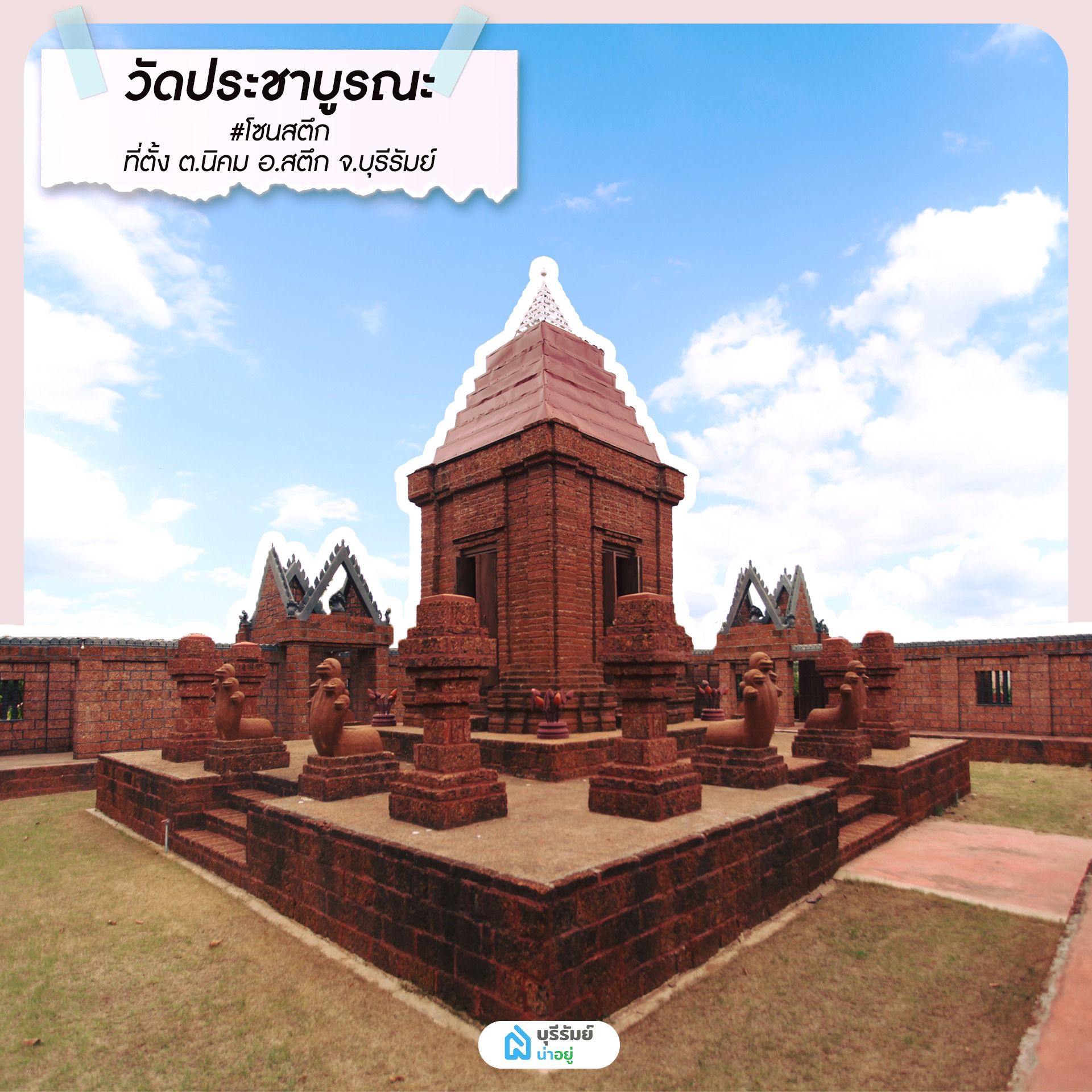 วัดประชาบูรณะเป็นวัดเก่าแก่ ของอำเภอสตึก ในอดีตชาวบ้านนิยมเรียกว่าวัดเก่า จนเมื่อบูรณะปรับปรุง ด้วยแรงศรัทธาของพุทธศาสนิกชน วัดมีการก่อสร้างใหม่ด้วยหินศิลาแลง เป็นรูปแบบปราสาทขอมโบราณ ล้อมรอบด้วยกำแพงแก้ว นำรูปแบบมาจากปราสาทหินพิมาย จ.นครราชสีมา และปราสาทเขาพนมรุ้ง ภายในอุโบสถมีพระพุทธรูปหินทรายปางมารวิชัยประดิษฐาน มีความสวยงามและยังเป็นวัดที่ผู้คนในอำเภอสตึกศรัทธามาอย่างยาวนาน