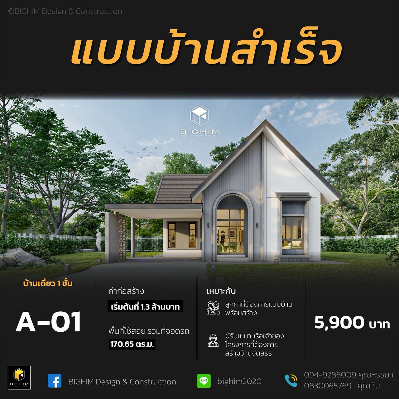 BIGHIM A-01 แบบบ้านสำเร็จ บิ๊กฮิม ดีไซน์ แอนด์ คอนสทรัคชั่น - BIGHIM Design and Construction