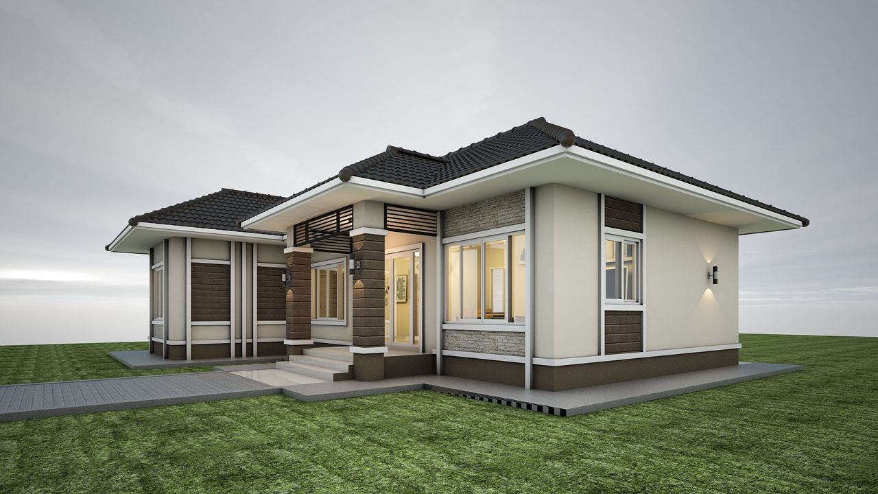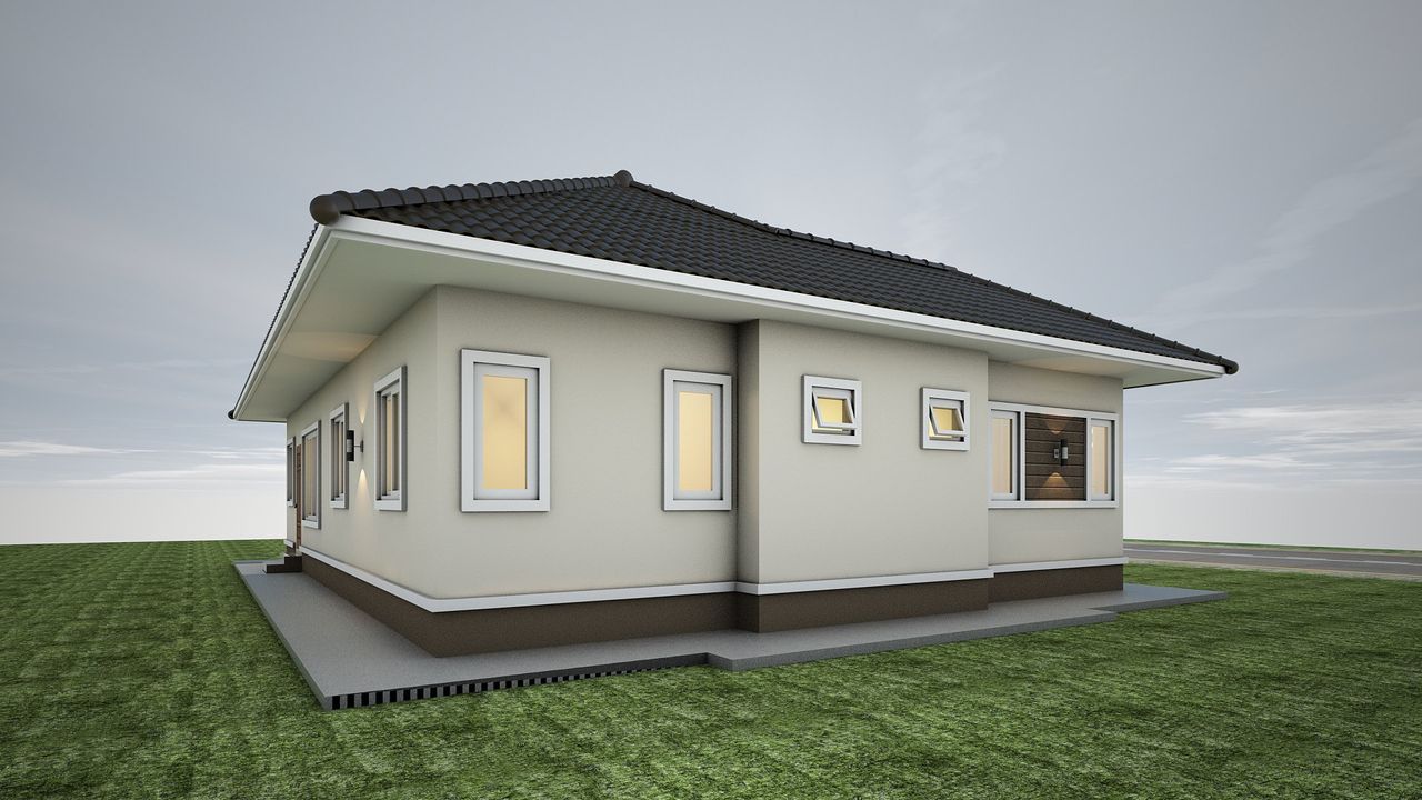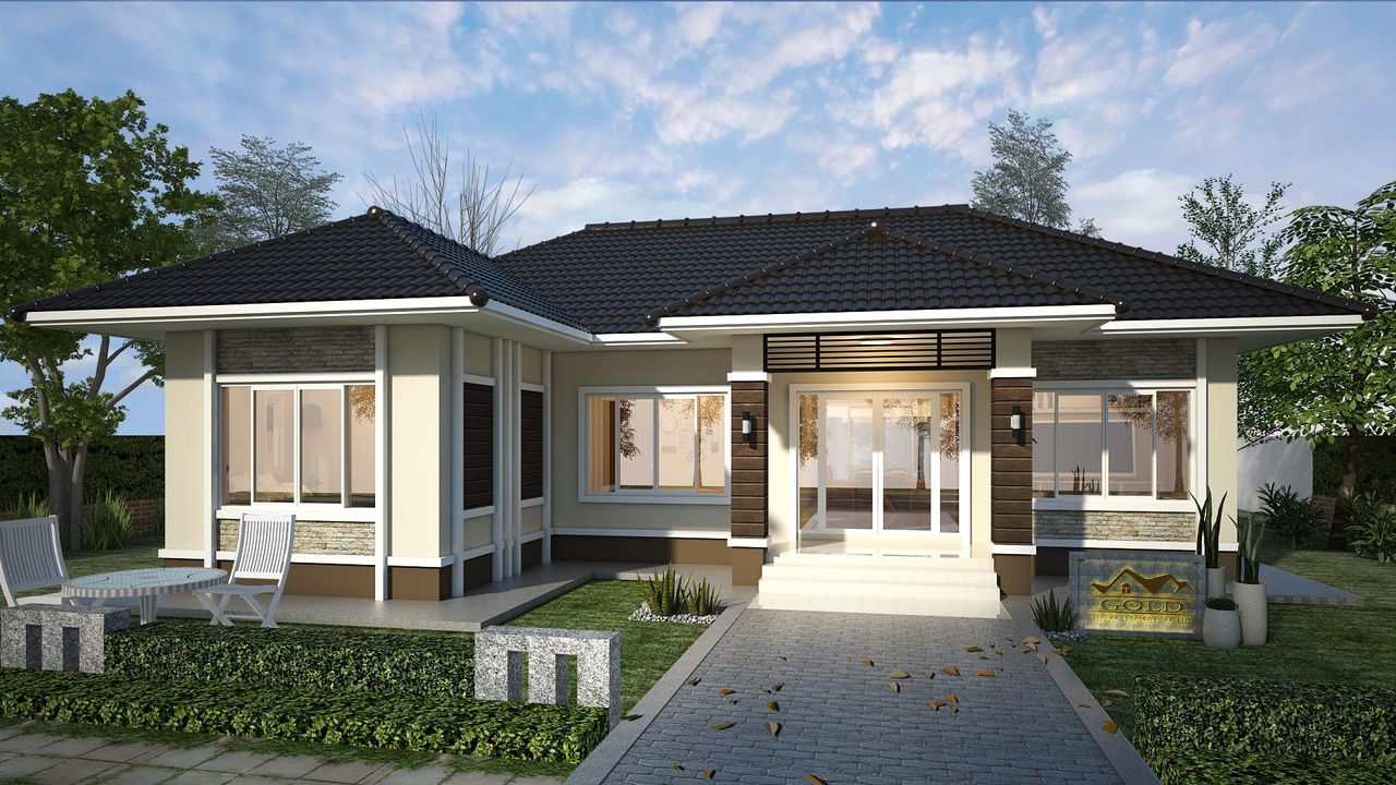 แบบบ้าน GHP343  คอนเทมโพรารี ฟังก์ชั่น : 1 ชั้น 3 ห้องนอน 2 ห้องน้ำ 1 ห้องครัว 1 ห้องรับแขก ไม่มีที่จอดรถ