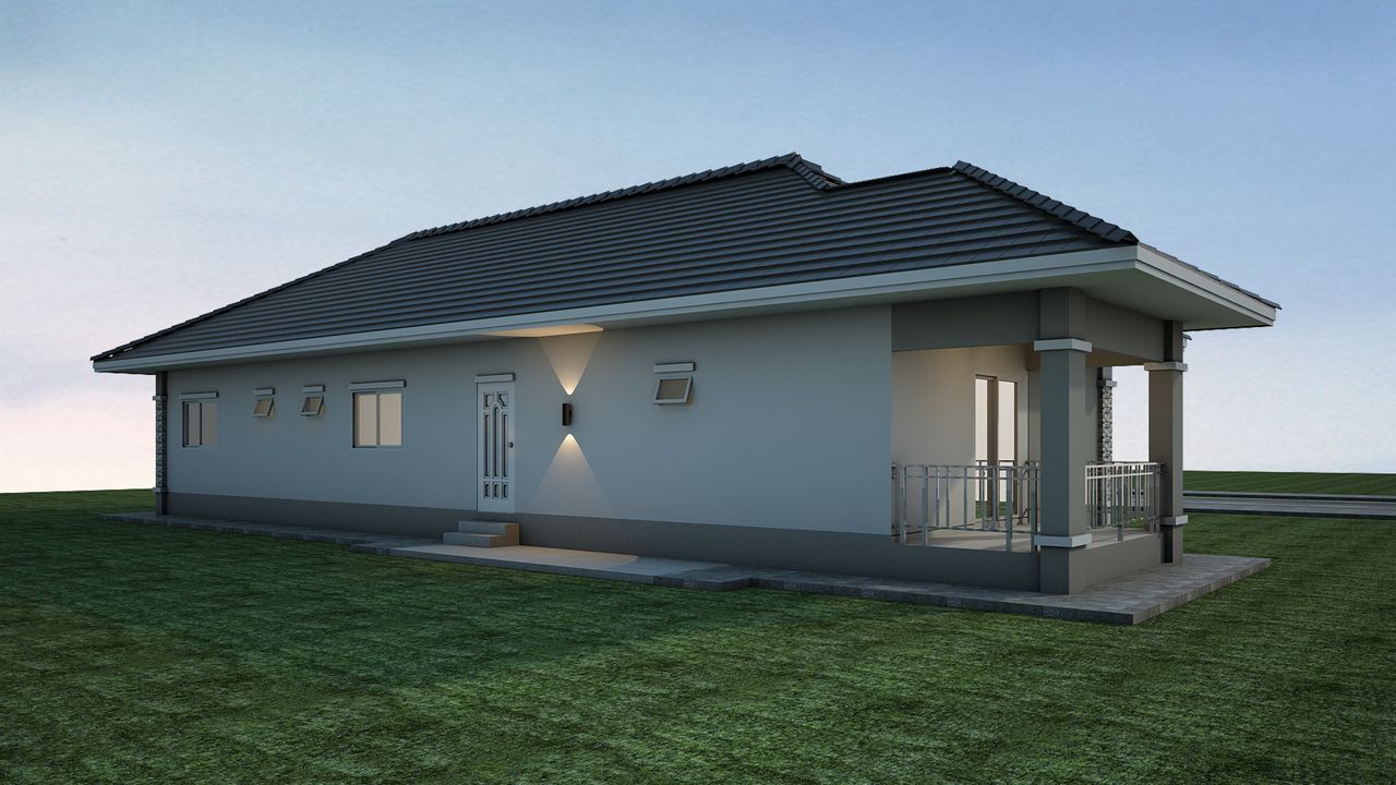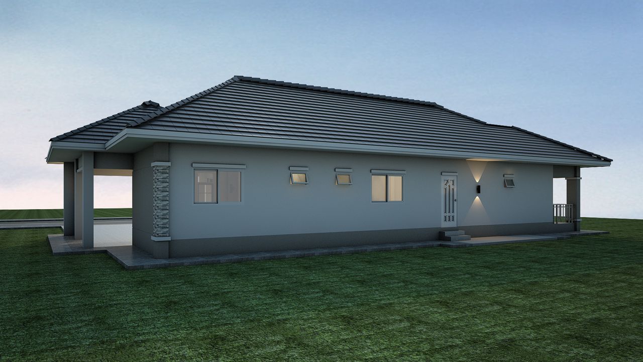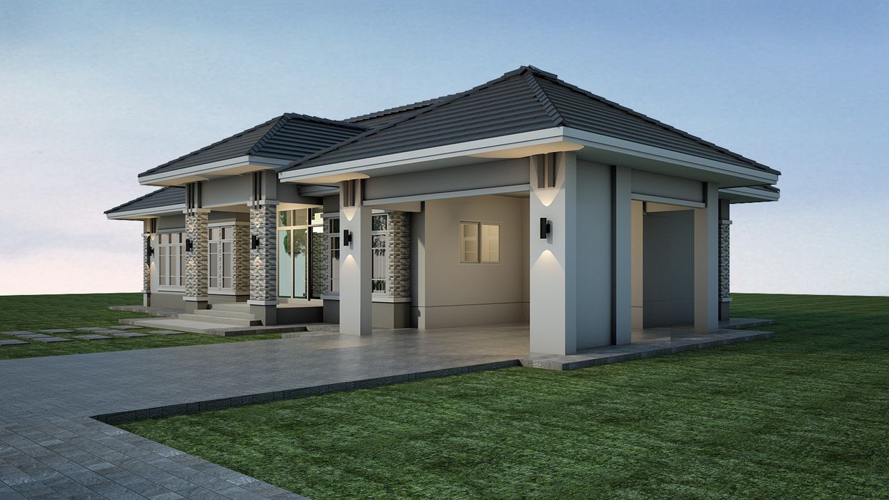 พื้นที่ใช้สอย :188.73 ตรม. ราคา 2.99 ลบ แบบบ้านสไตล์ Modern Contemporary Hip Roof House