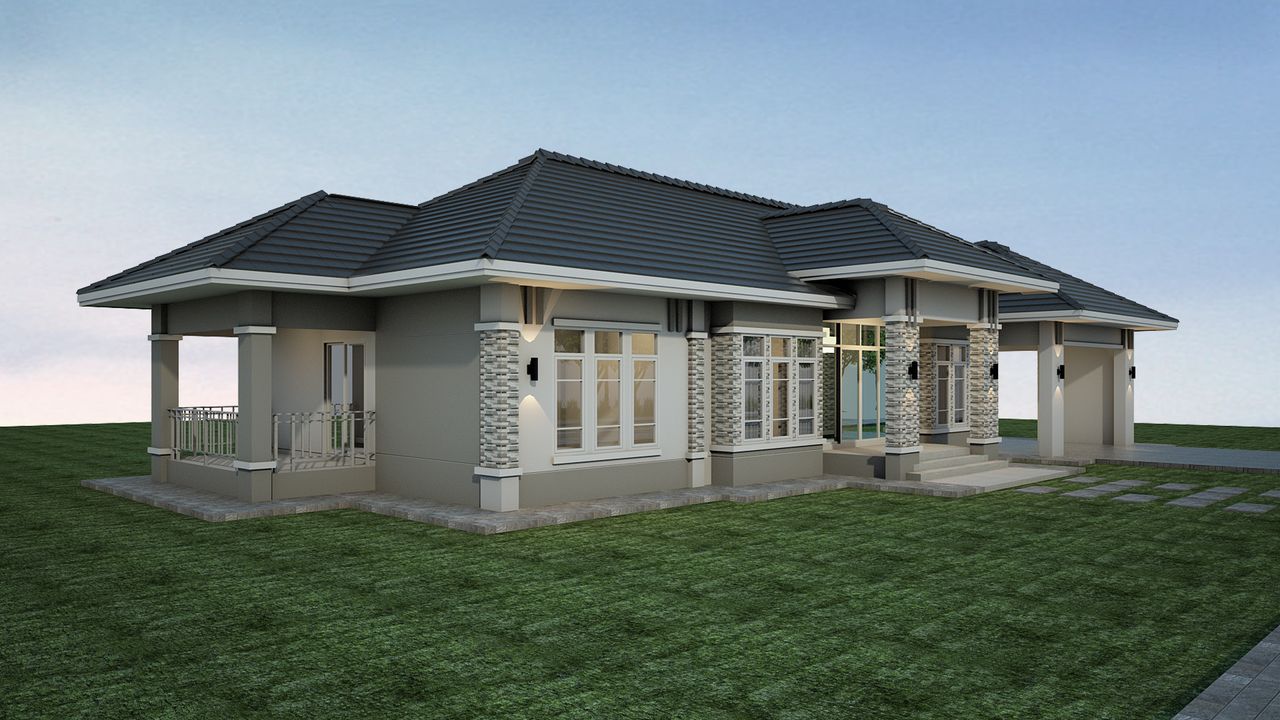 แบบบ้าน GHP-G151 โมเดิร์นคอนเทมโพรารี่ ฟังก์ชั่น : 1 ชั้น 4 ห้องนอน 3 ห้องน้ำ 1 ห้องครัว 1 ห้องรับแขก 2 ที่จอดรถ