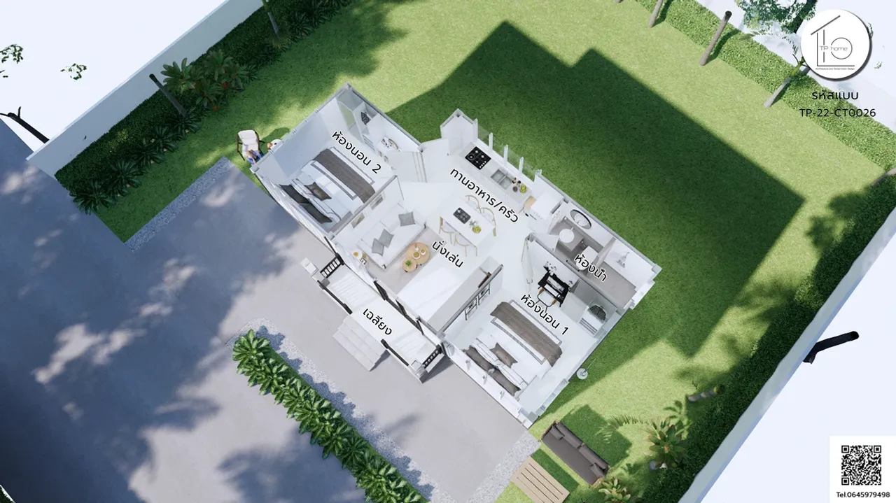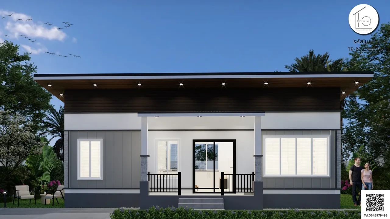 บ้านรหัส CT026 ออกแบบมาเพื่อเป็นบ้านชั้นเดียวขนาดเล็กที่เหมาะสำหรับครอบครัวเล็ก ที่ต้องการบ้านในงบประมาณไม่เกิน 1 ล้านบาท การออกแบบเน้นความเรียบง่ายและทันสมัยในสไตล์ Contemporary โดยคำนึงถึงการใช้พื้นที่อย่างมีประสิทธิภาพและประหยัดพลังงาน