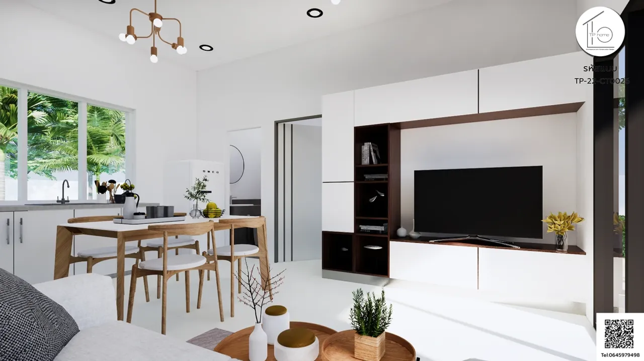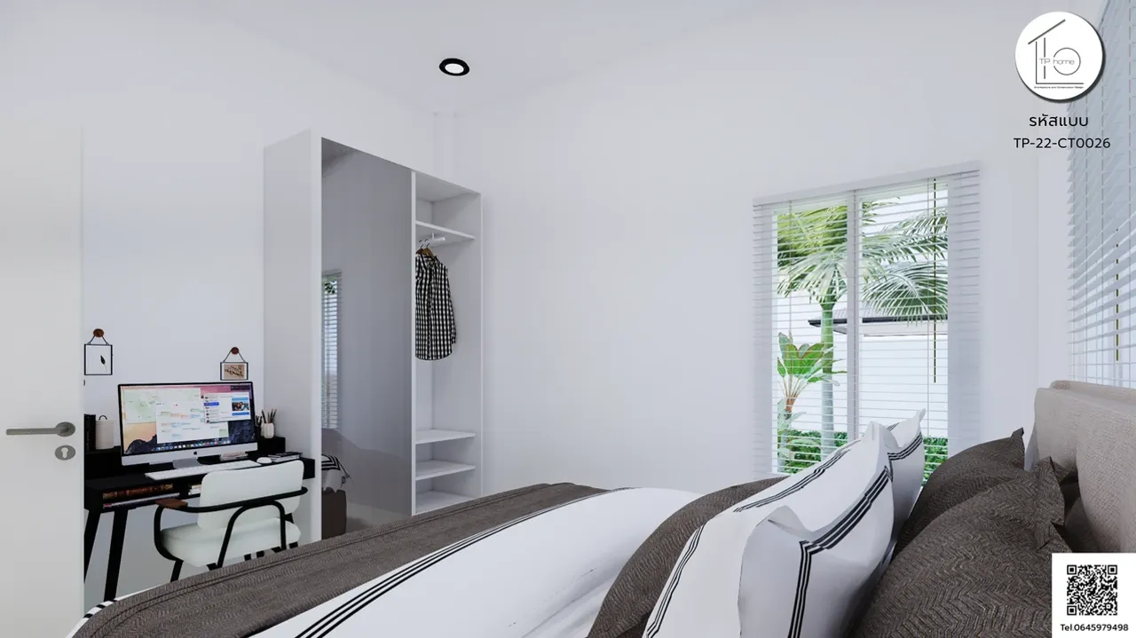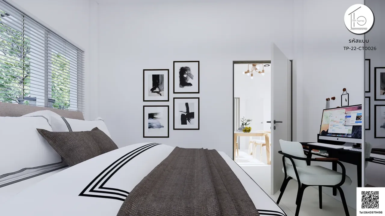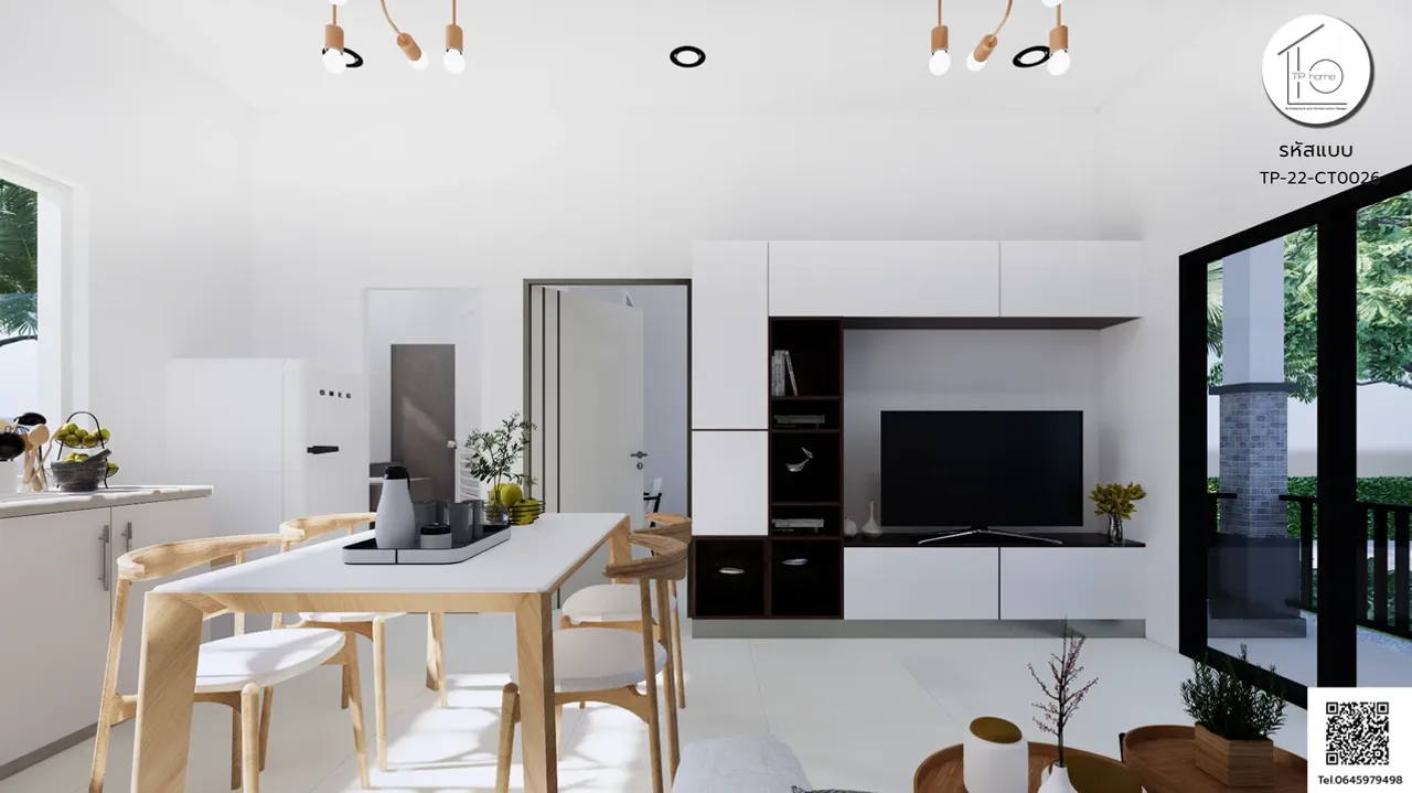 บ้าน CT026 ออกแบบในสไตล์ Contemporary ที่เน้นการใช้เส้นสายที่เรียบง่ายและทันสมัย การเลือกใช้วัสดุที่มีคุณภาพและการจัดวางพื้นที่อย่างมีประสิทธิภาพ ทำให้บ้านมีบรรยากาศโปร่งโล่งและน่าอยู่ แม้ว่าจะมีขนาดเล็กแต่สามารถใช้งานได้ครบครัน
