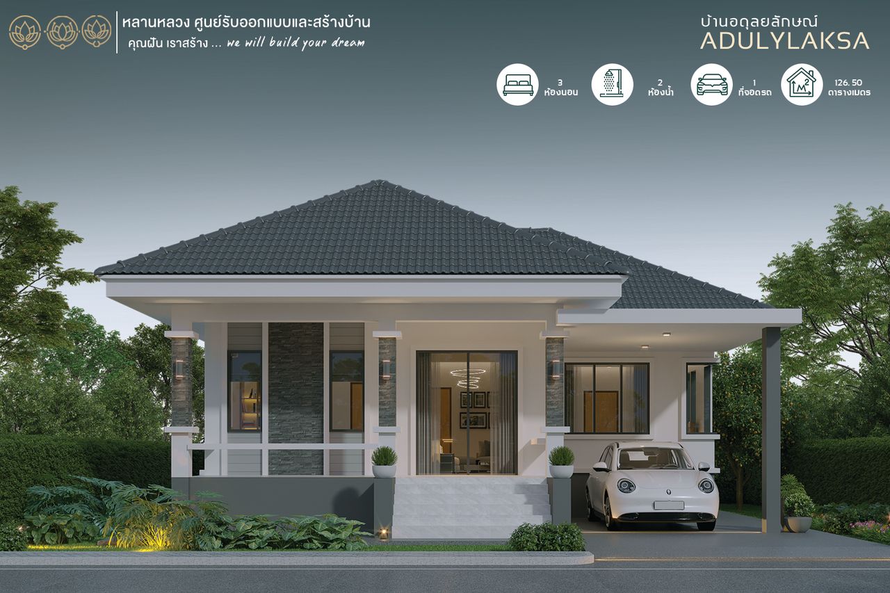 รับสร้างบ้านหลานหลวง บ้านชั้นเดียวสไตล์คอนเทมโพรารี่ 3 ห้องนอน 2 ห้องน้ำ ชื่อแบบบ้านอดุลยลักษณ์