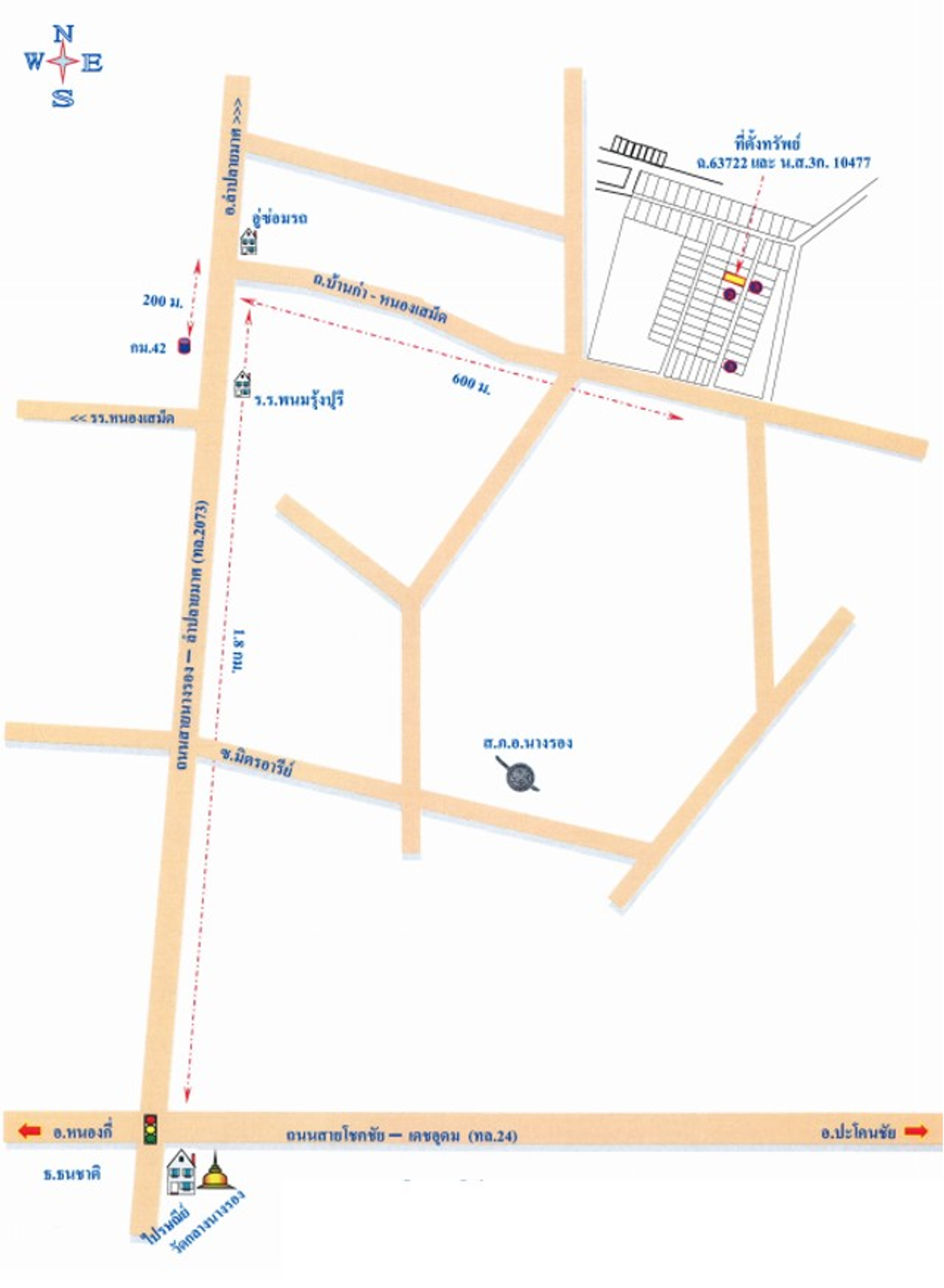 ที่ตั้ง : แยกจากถนนสายนางรอง - ลำปลายมาศ เข้าสู่ถนนบ้านก่า - หนองเม็ด ต่ออีก 600 เมตร ถึงหน้าเคหะนางรอง1