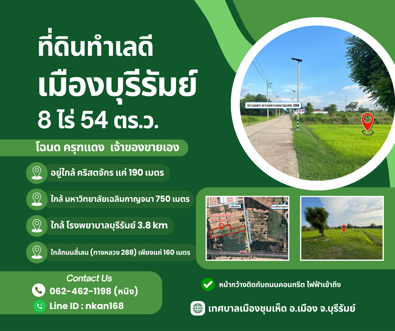 ขายที่ดินทำเลทอง ใกล้คริสตจักร, รพ.บุรีรัมย์, ม.เฉลิมกาญจนา