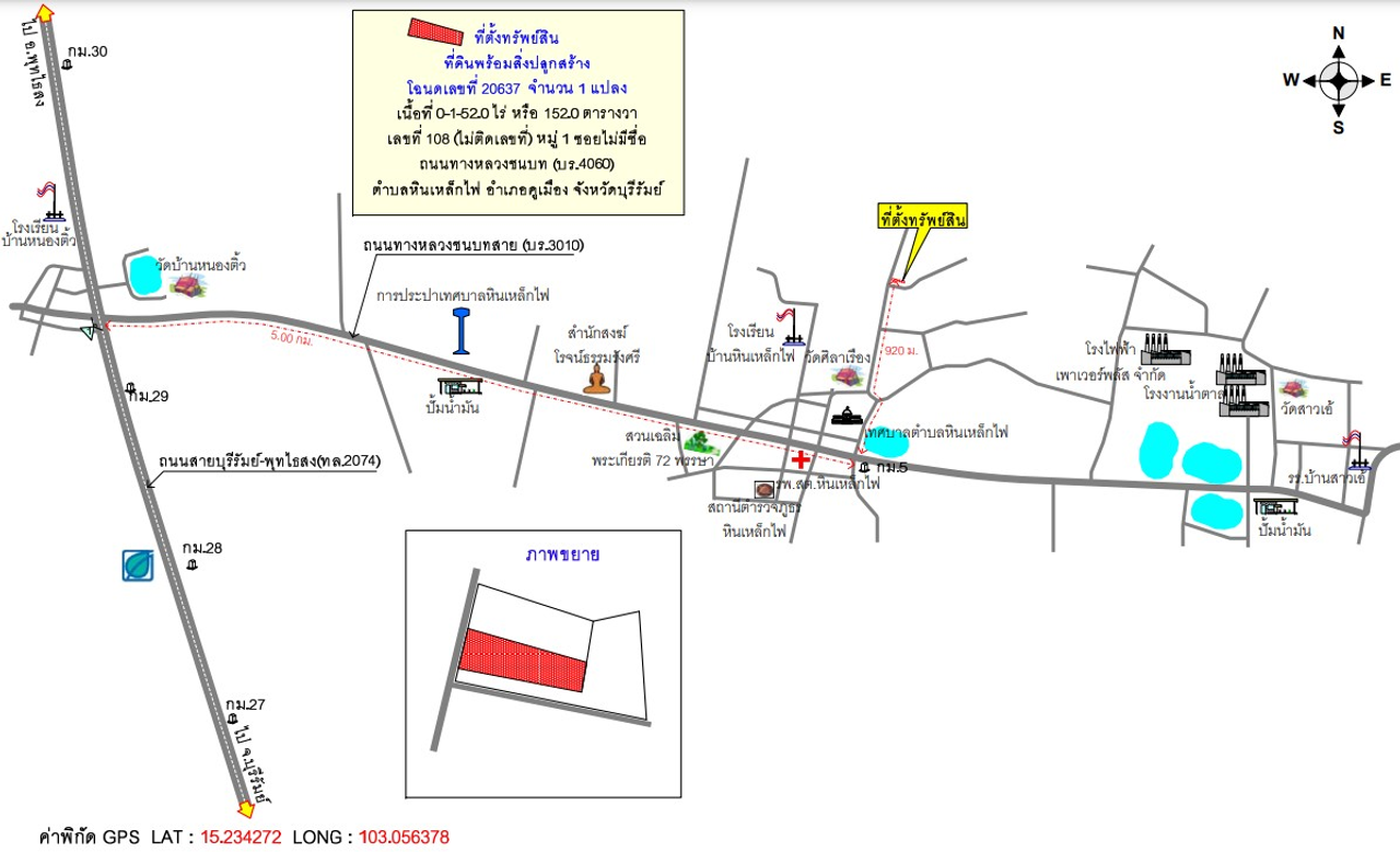 รายละเอียดเลขที่เอกสารสิทธิ์ : ที่ดินพร้อมสิ่งปลูกสร้าง 20637 บุรีรัมย์ อำเภอคูเมือง ตำบลหินเหล็กไฟ