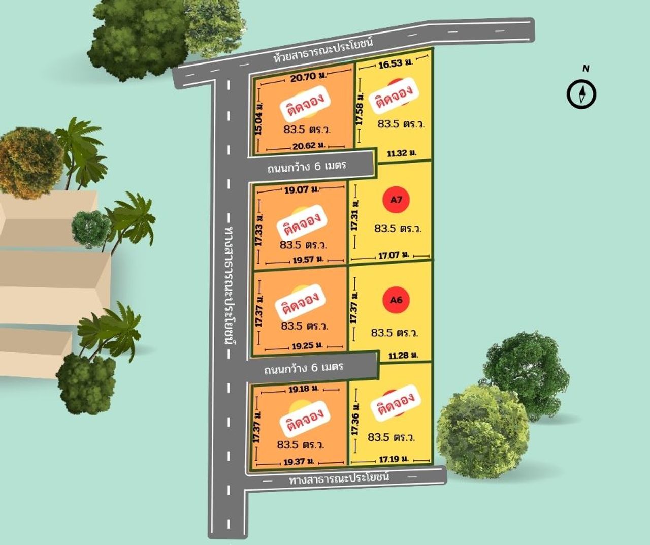 ขนาด: 8 แปลง เนื้อที่ แปลงละ 83.5 ตร.ว.