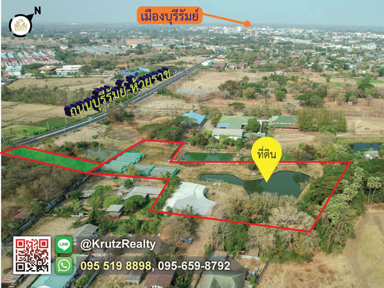 ทำเลศักยภาพ: ที่ดินตั้งอยู่ในพื้นที่ที่กำลังเติบโต ใกล้กับแหล่งชุมชน สถานศึกษา และสถานที่ท่องเที่ยวสำคัญของบุรีรัมย์