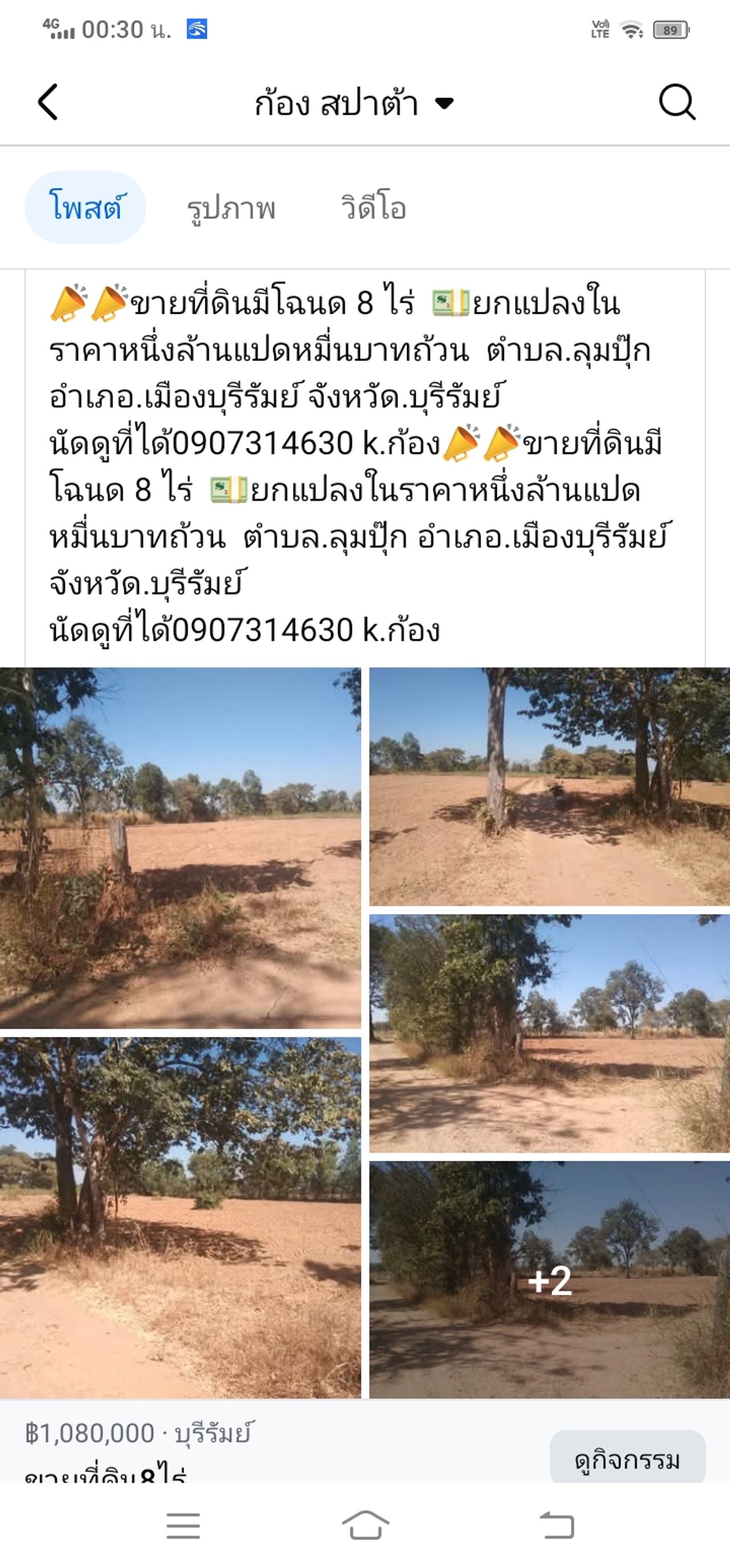 นัดดูที่ได้0907314630 k.ก้อง📣📣ขายที่ดินมีโฉนด 8 ไร่ 💵ยกแปลงในราคาหนึ่งล้านแปดหมื่นบาทถ้วน ตำบล.ลุมปุ๊ก อำเภอ.เมืองบุรีรัมย์ จังหวัด.บุรีรัมย์