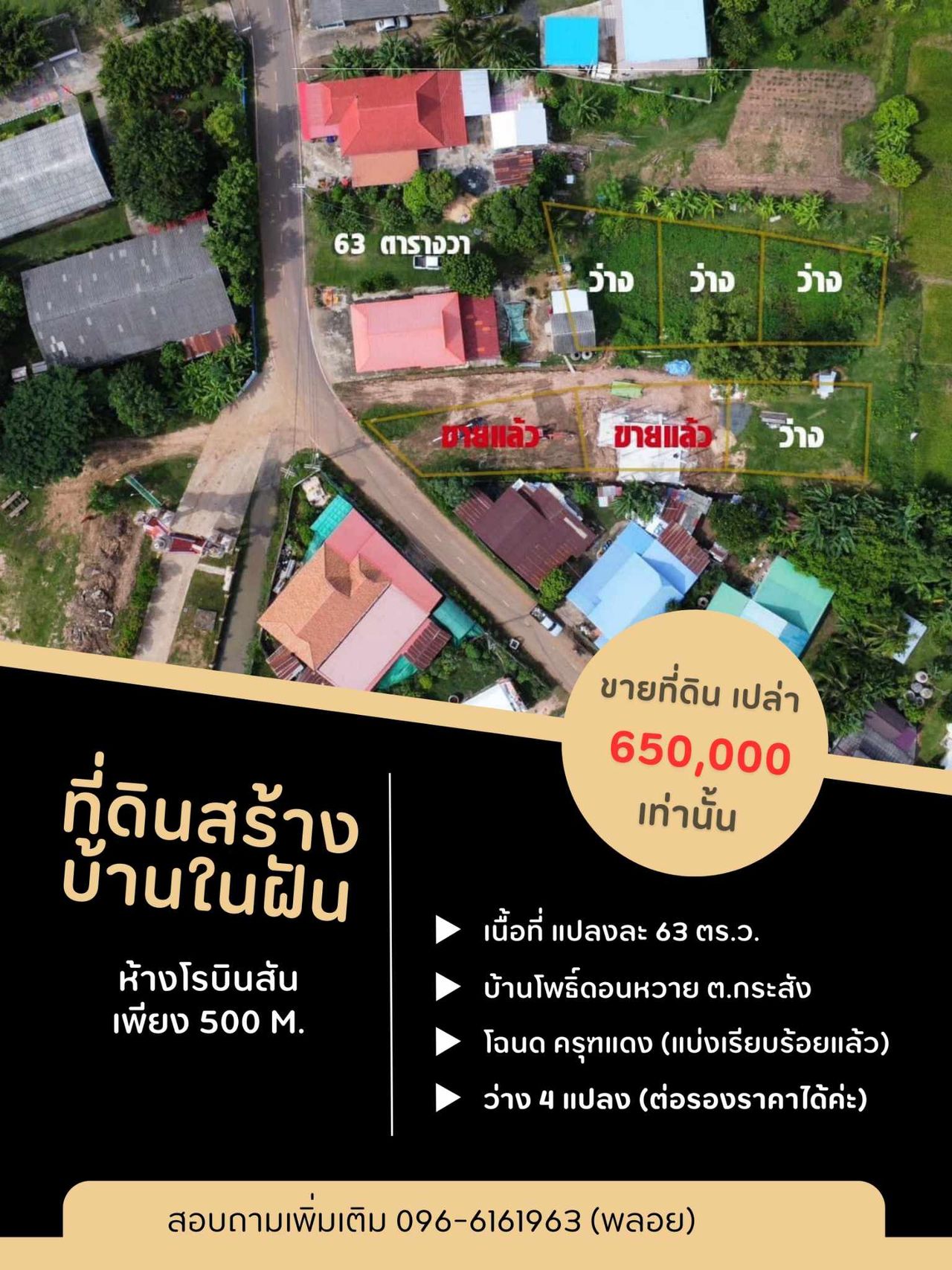เนื้อที่ แปลงละ 63 ตร.ว.