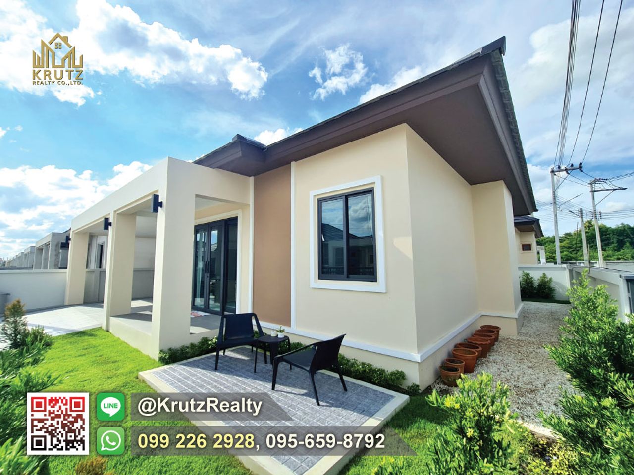 TYPE : D ราคาเริ่มต้น 5.4 ล้าน เนื้อที่ 75 ตารางวา พื้นที่ใช้สอย 294 ตารางเมตร 4 ห้องนอน 3 ห้องน้ำ 1 ห้องตรัว 2 ที่จอดรถ