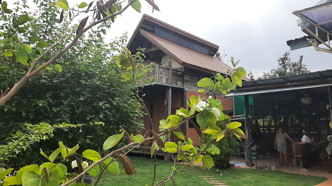 มีบ้านสองหลัง พื้นที่ร่มรื่นให้ความส่วนตัวด้วยพื้นที่ระหว่างสองหลังจัดเป็นมุมรับประทานอาหาร มีห้องน้ำรอบรับแขกด้านนอกตัวบ้าน