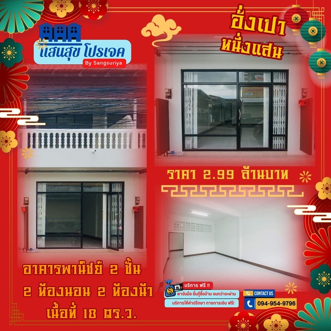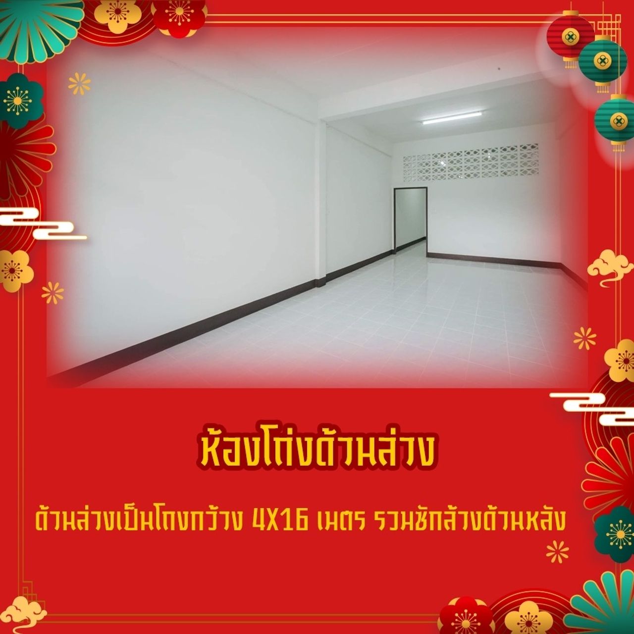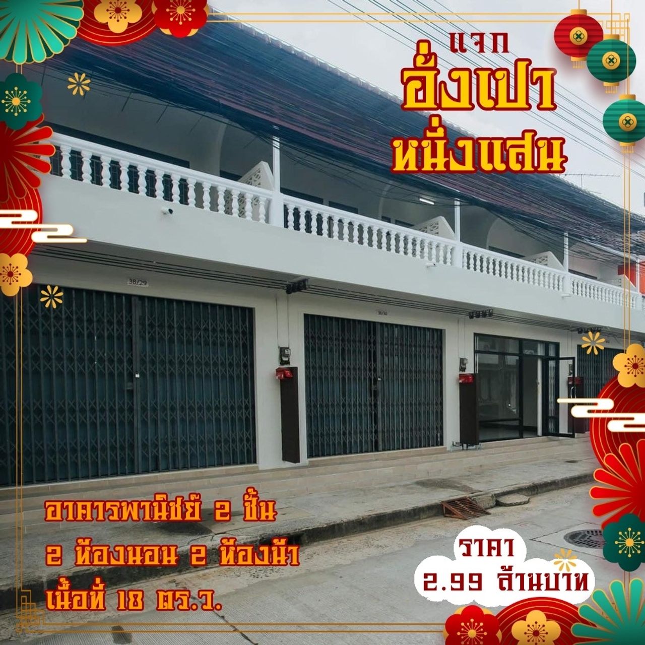 อาคารพาณิช 2 ชั้น 2 ห้องนอน 2 ห้องน้ำ ด่านล่างเป็นโถงกว้าง 4x16 เมตร รวมซักล้างด้านหลัง อีก 2 เมตร เป็น 18 เมตร