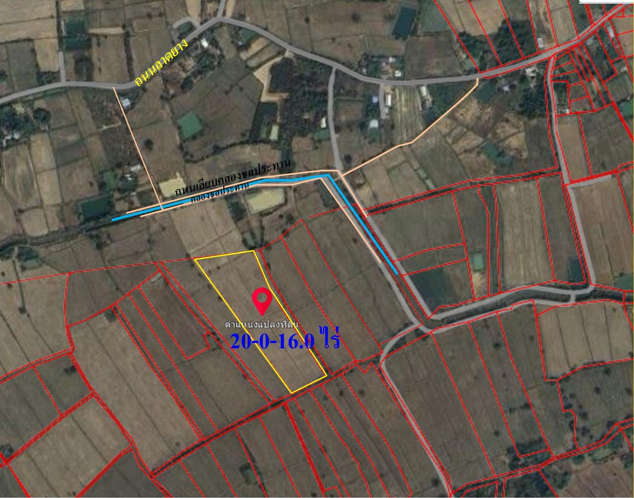 ที่นาติดคลอง 3 ด้าน ขนาด 20 ไร่ 0 งาน 16 ตร.วา