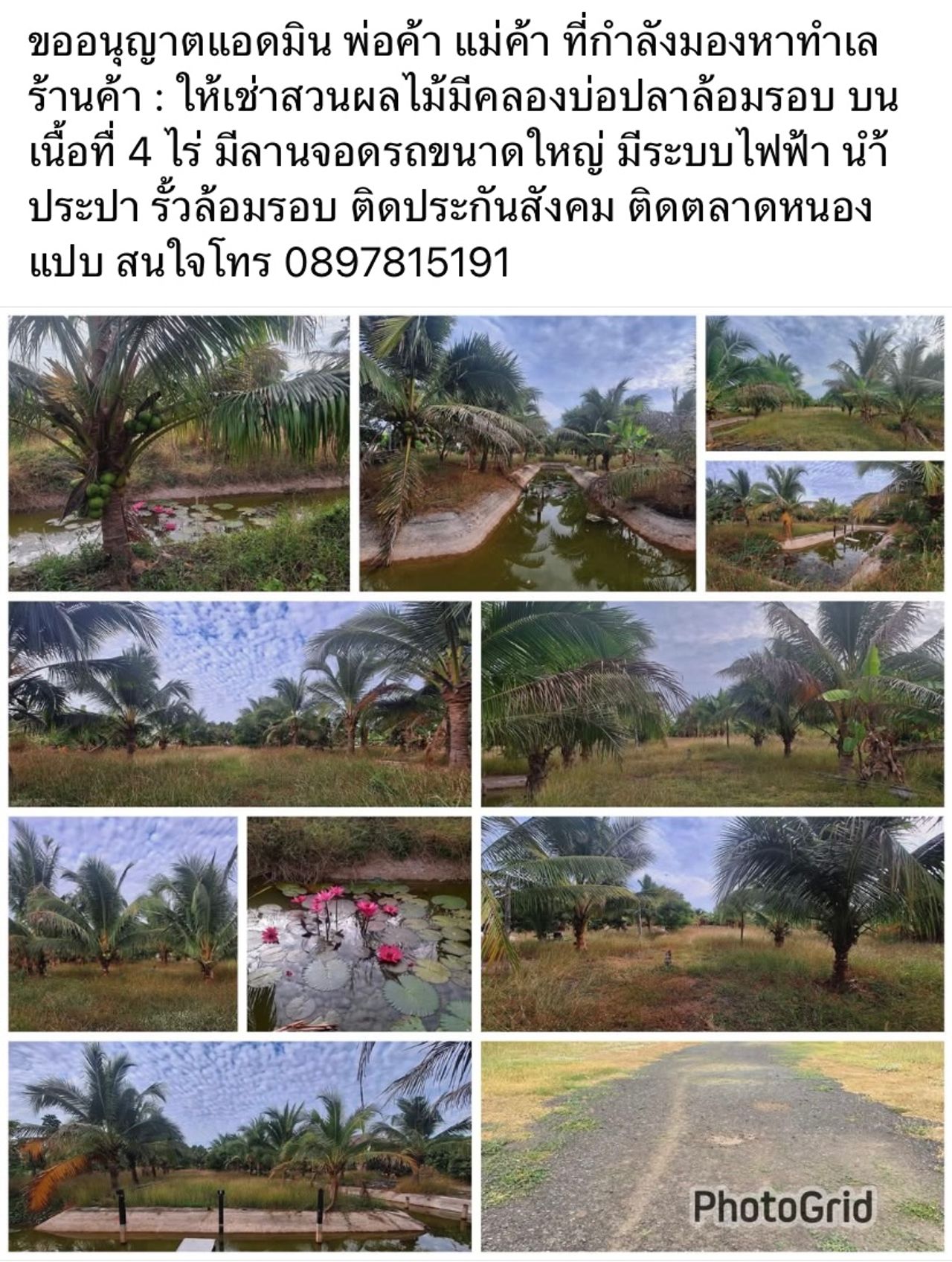 ที่ดิน 4 ไร่ เป็นสวนผลไท้มีคลองบ่อปลาล้อมรอบ มีลานจอดรถ 1 ไร่ มีระบบไฟฟ้า น้ำประปา รั้วล้อมรอบ ติดประกันสัวคมและหน่วยงานราชการหลายแห่งตลาดคลองถม เหมาะกับการทำร้านอาหาร คาเฟ่ สนใจติดต่อ 0897815191