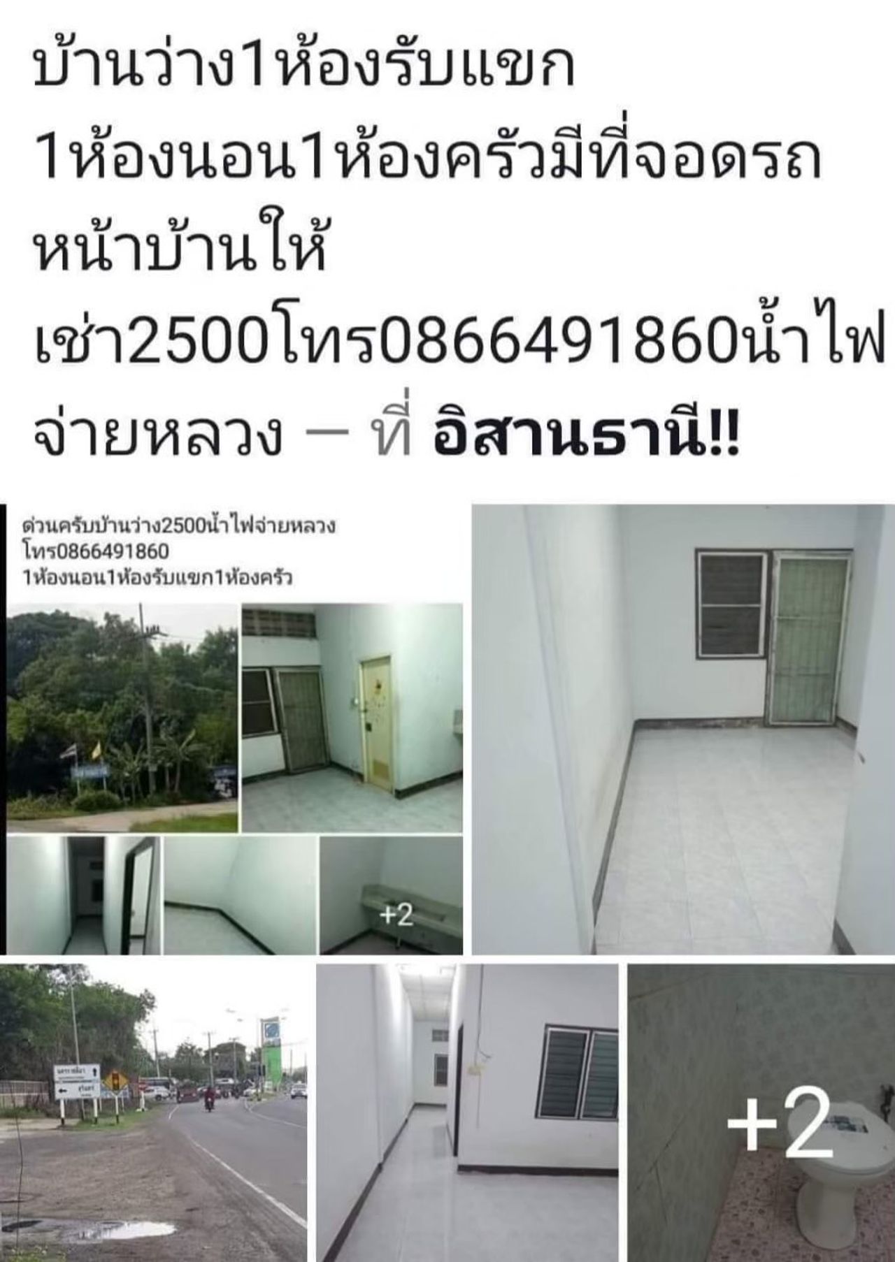 บ้าน1 ห้องนอน 1 ห้องรับแขก 1 ห้องคร้ว จอดรถยนต์หน้าบ้าน มีบริเวณหลังบ้าน มีที่นอน 5 ฟุต ตู้1 หลังน้ำไฟจ่ายรัฐ เข้าออกสบาย