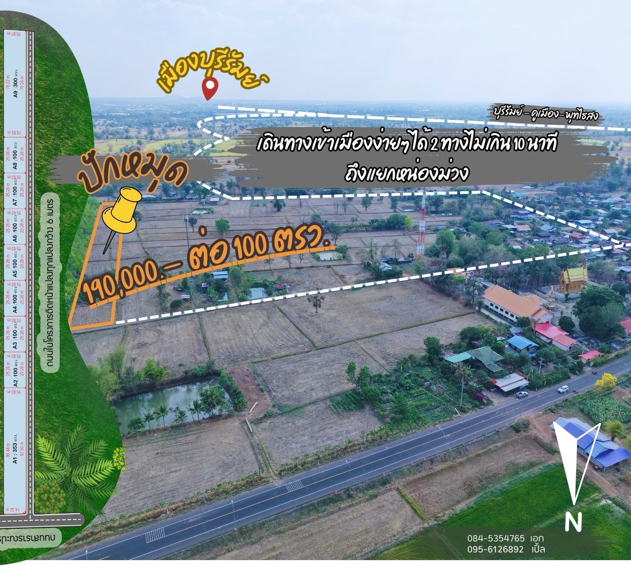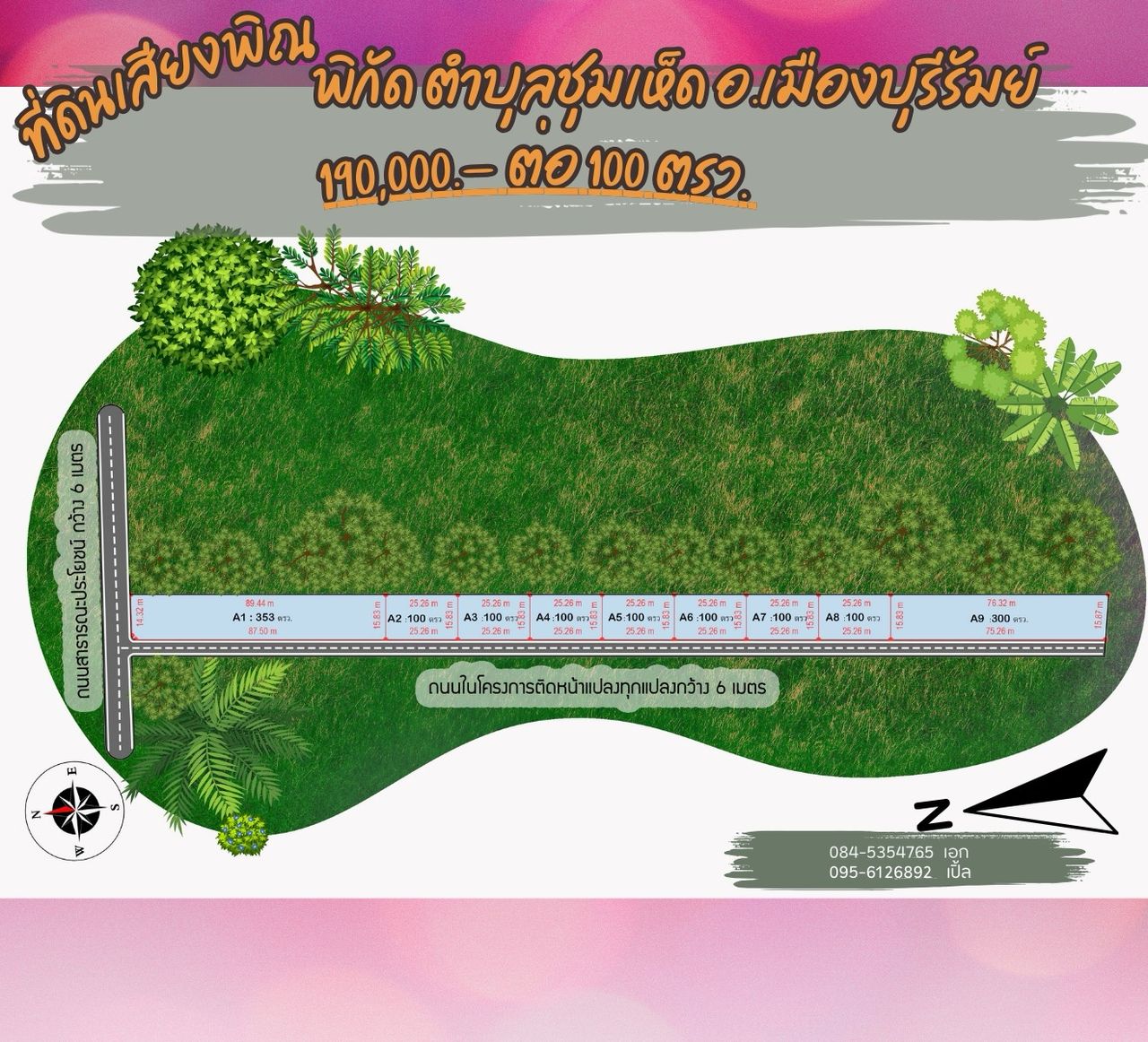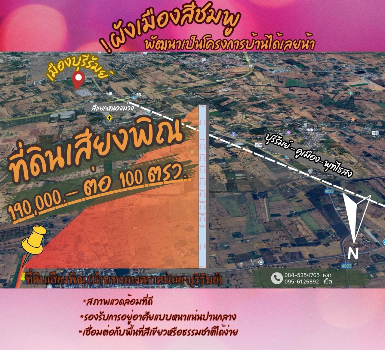 ที่ดินแบ่งล็อคทำเลทอง ตำบลชุมเห็ด อ.เมืองบุรีรัมย์ เริ่มต้นเพียง 190,000 บาท!