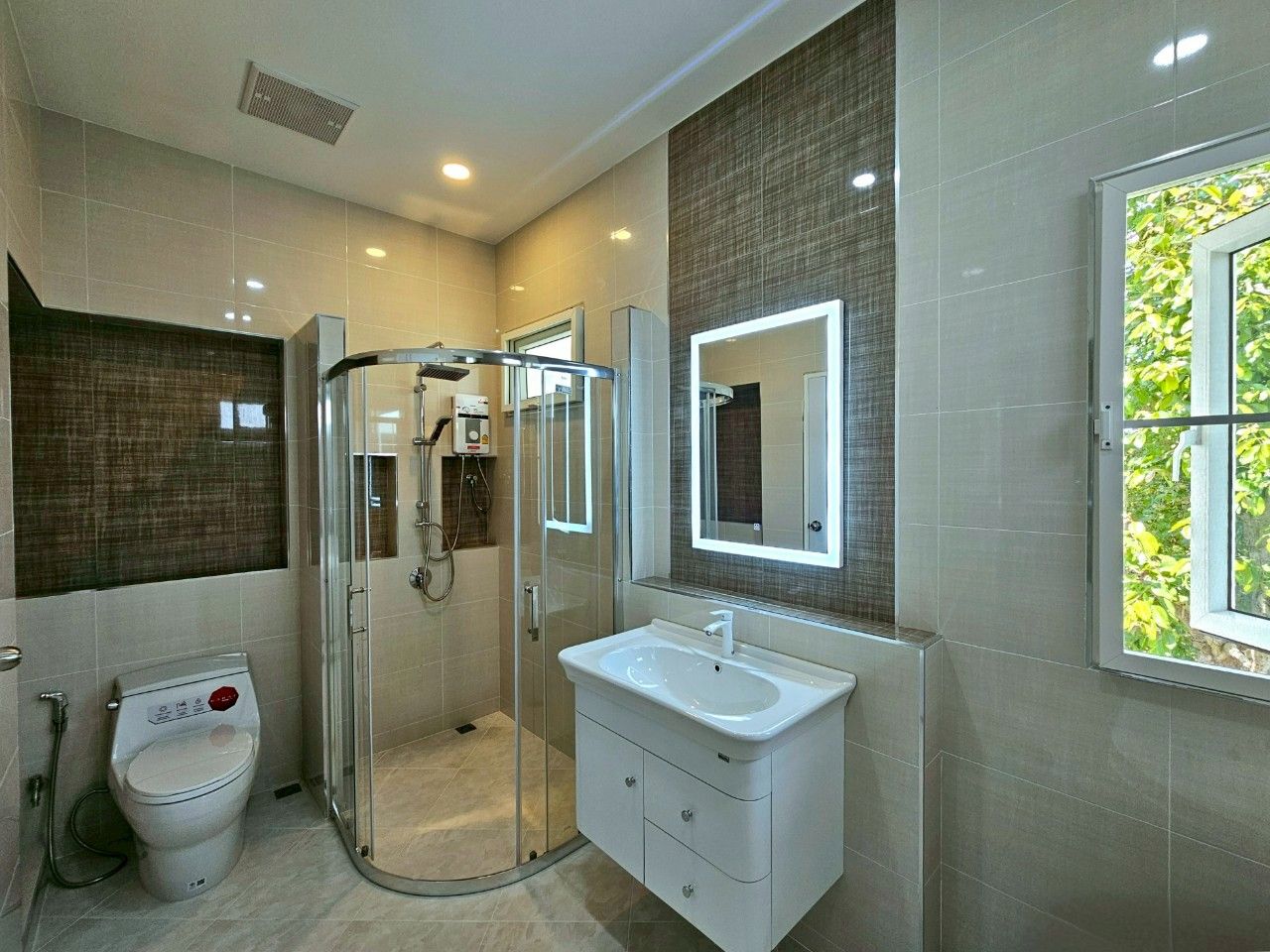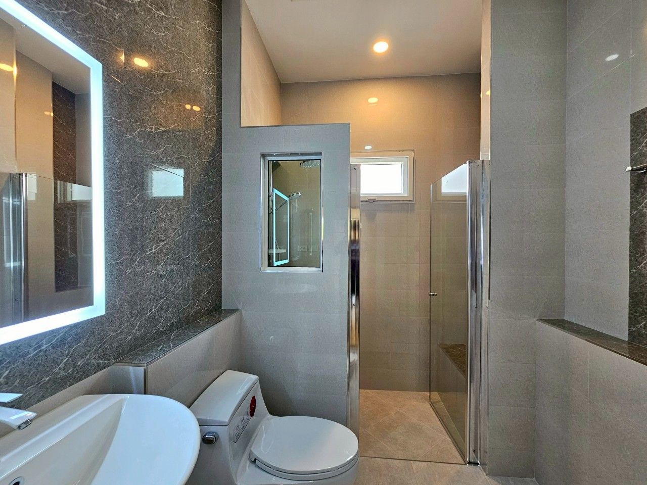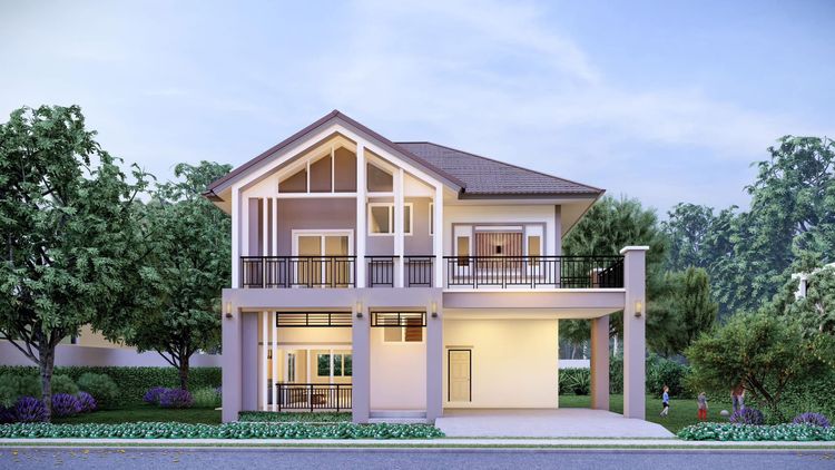 ตัวบ้านออกแบบในสไตล์ Modern Contemporary เรียบหรู โปร่งโล่ง และใช้ประโยชน์จากทุกตารางเมตรได้อย่างคุ้มค่า เน้นแสงธรรมชาติ การระบายอากาศ และความกลมกลืนกับธรรมชาติรอบตัว ทุกหลังสร้างด้วยวัสดุคุณภาพสูง แข็งแรง ทนทาน ตอกเสาเข็มเต็มระบบ ผนังอิฐมวลเบา ช่วยกันร้อน-กันเสียง พร้อมหลังคามีฉนวนกันความร้อน ภายในตกแต่งด้วยกระเบื้องแกรนิตโต้ ฝ้าเพดานสูง และกระจกบานใหญ่รับวิวสวน