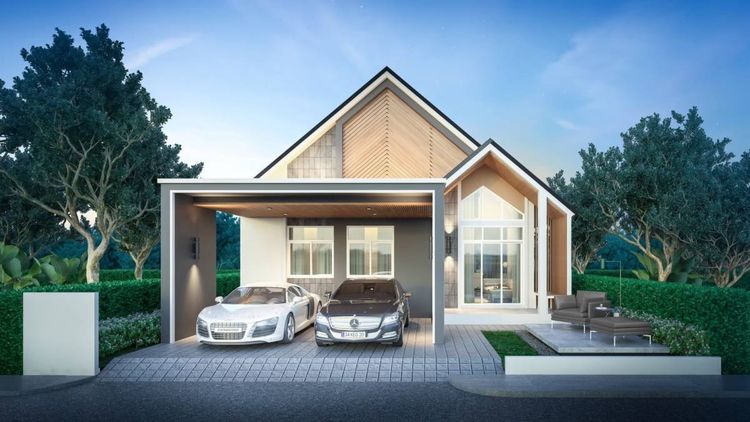 บ้านเดี่ยว หลังคาทรงนอร์ดิก หลังคาทรงปั้นหยา ที่มีการออกแบบเรียบหรูสวยงาม
