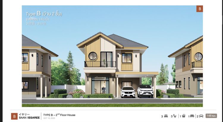 บ้านB บ้าน2ชั้น 3ห้องนอน3ห้องน้ำ พร้อมโรงจอดรถค่ะ