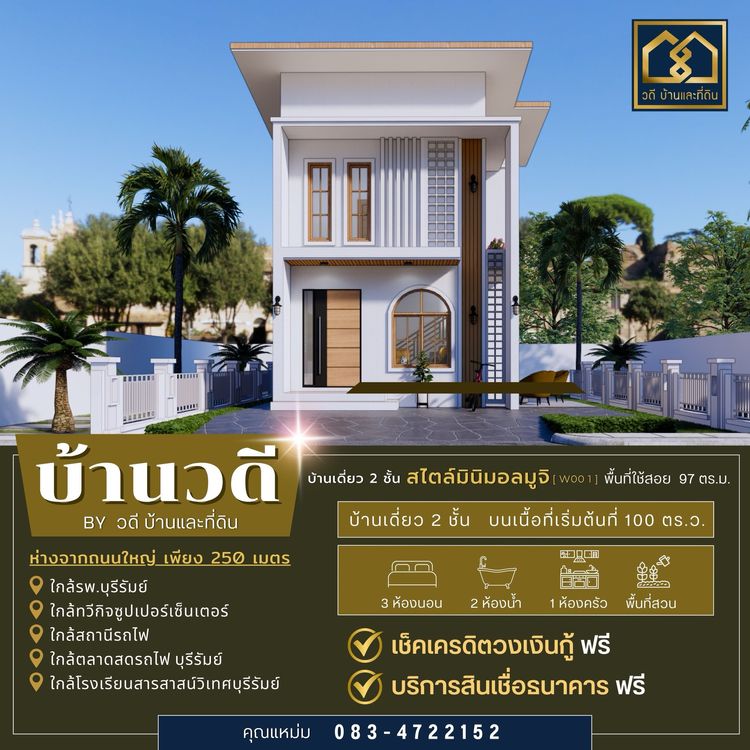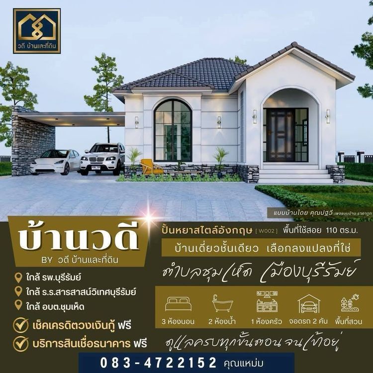 บ้านเดี่ยวบุรีรัมย์บนเนื้อที่เริ่มต้นที่ 100 ตร.ว
