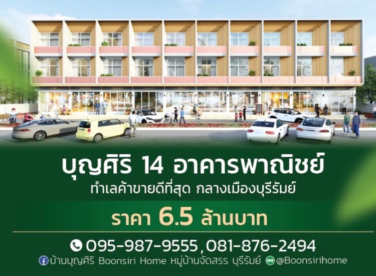 เปิดจองแล้ว โครงการบุญศิริ 14 อาคารพาณิชย์ 3 ชั้น ทำเลค้าขายดีที่สุดในบุรีรัมย์