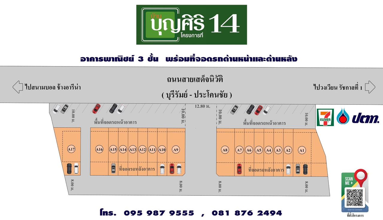 มีโรงจอดรถหลังอาคารทุกห้อง และลานจอดรถหน้าอาคาร เหมาะกับการค้าทุกประเภท