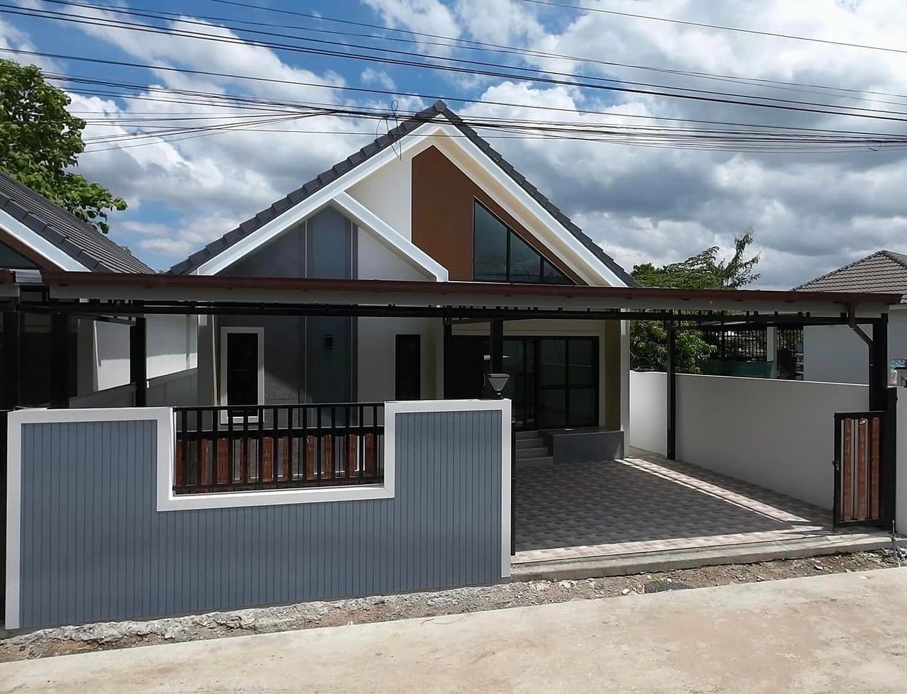 พื้นที่หน้าบ้านกว้าง จอดรถได้ 2 คัน