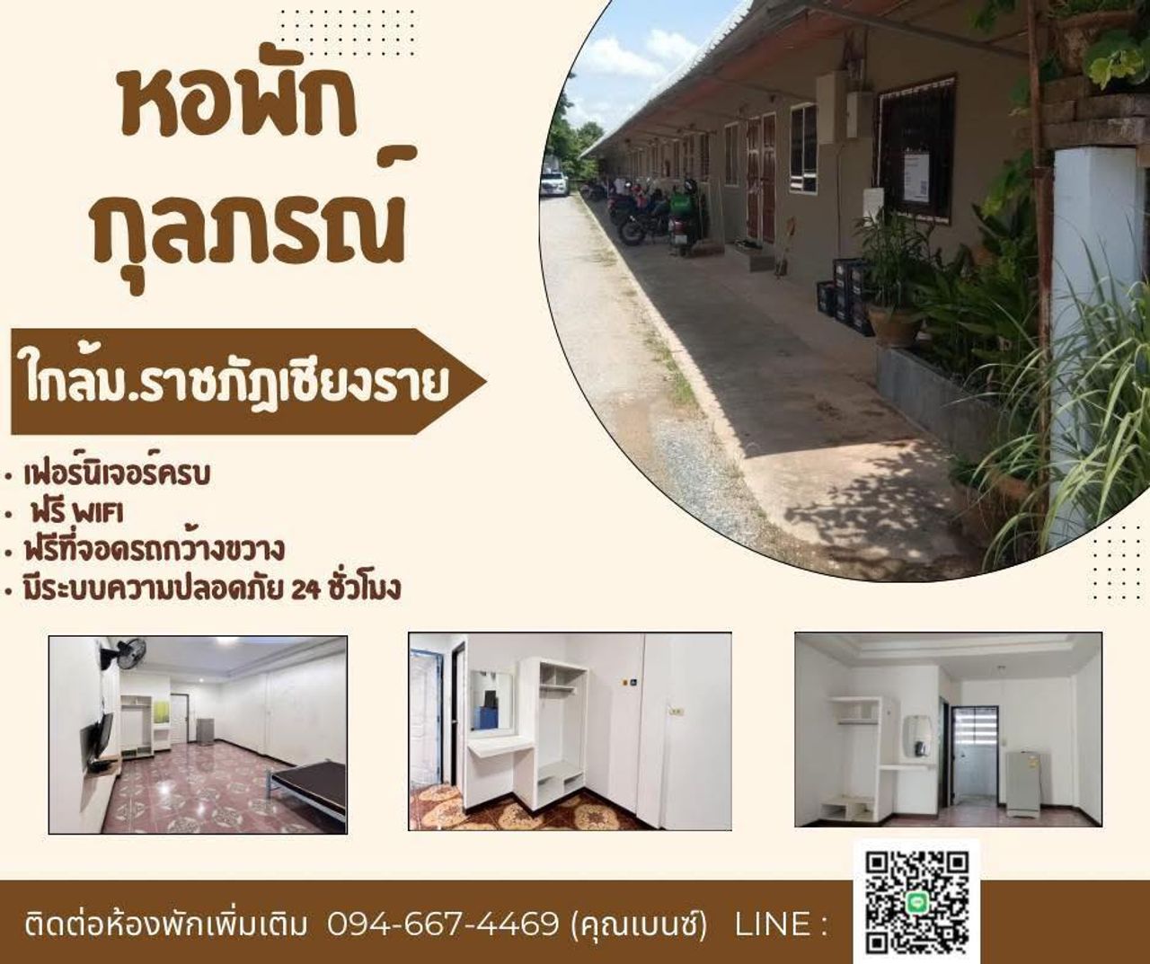 หอพักกุลภรณ์ เชียงราย – ที่พักสะดวกสบาย ใกล้มหาวิทยาลัยและแหล่งชุมชน