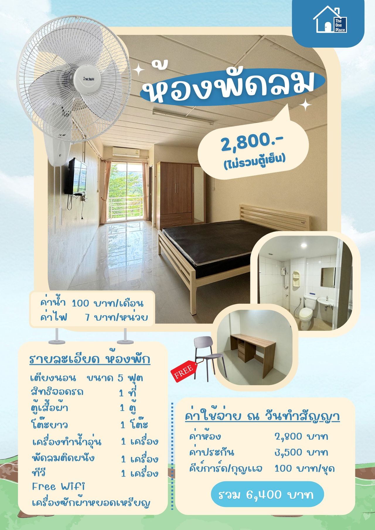 - ห้องพัดลม ราคา 2,800 บาท/เดือน