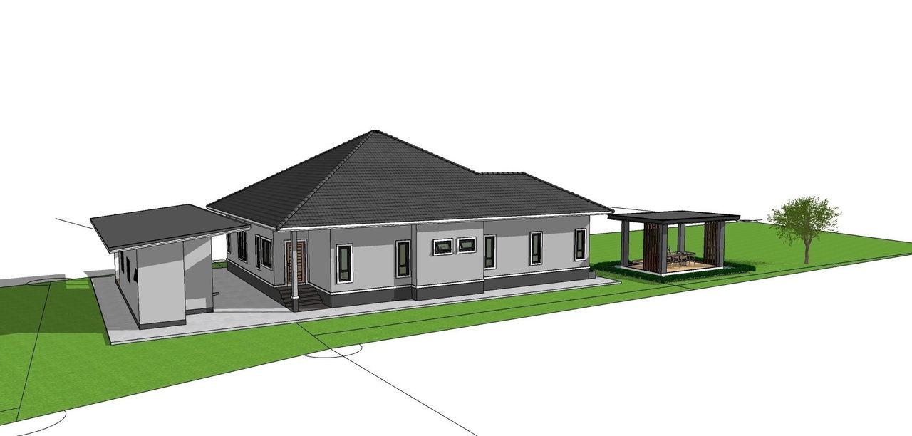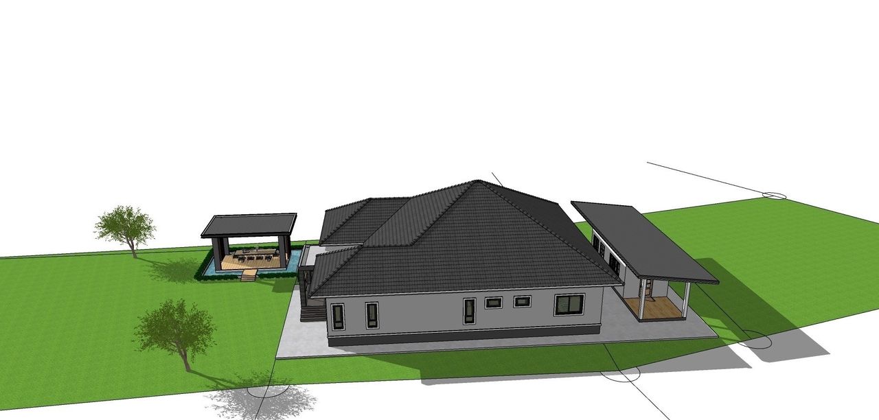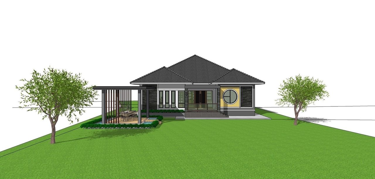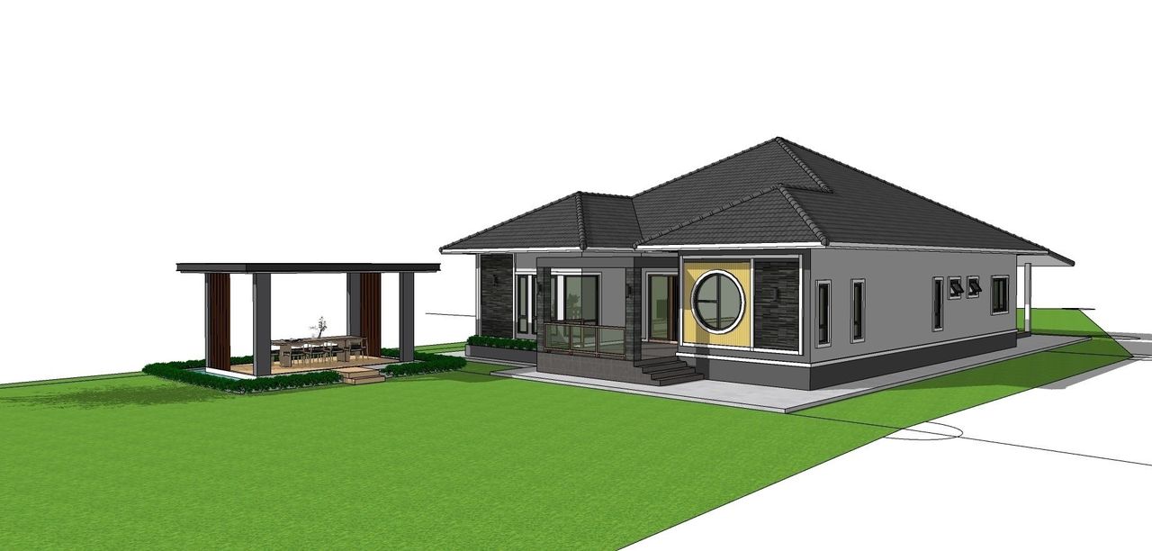 แบบบ้านชั้นเดียว สไตล์คอนเทมโพรารี่ 3 จั่ว ห้างหุ้นส่วนจำกัด เดอะแปลน - The Plan limited partnership คอนเทมโพรารี่