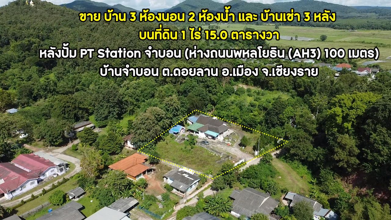 ขายบ้านพร้อมที่ดิน-1-ไร่-15-ตร.วา-โซนหลังปั๊ม-PT-Station-จำบอน-ต.ดอยลาน-อ.เมือง-จ.เชียงราย