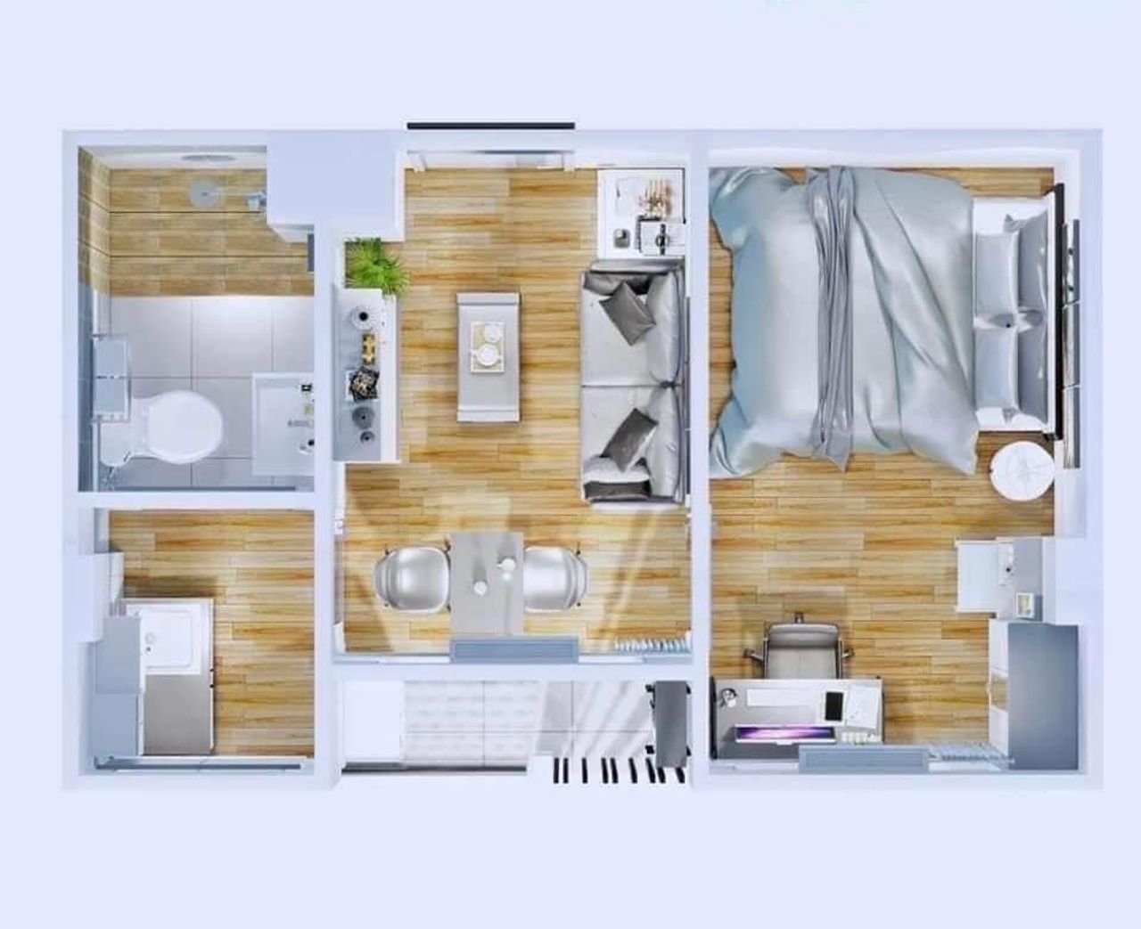 🏠 1ห้องนอน, 1ห้องน้ำ, 1 ห้องรับแขก, 1ห้องครัว, ระเบียง และเครื่องซัก/อบผ้า