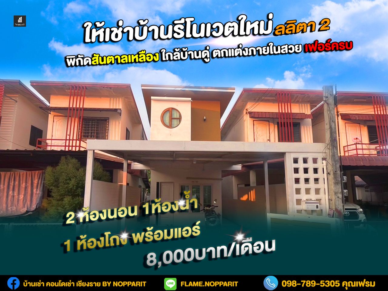 ให้เช่า บ้านลลิตา 2 สันตาลเหลือง ใกล้บ้านดู่ รีโนเวตใหม่