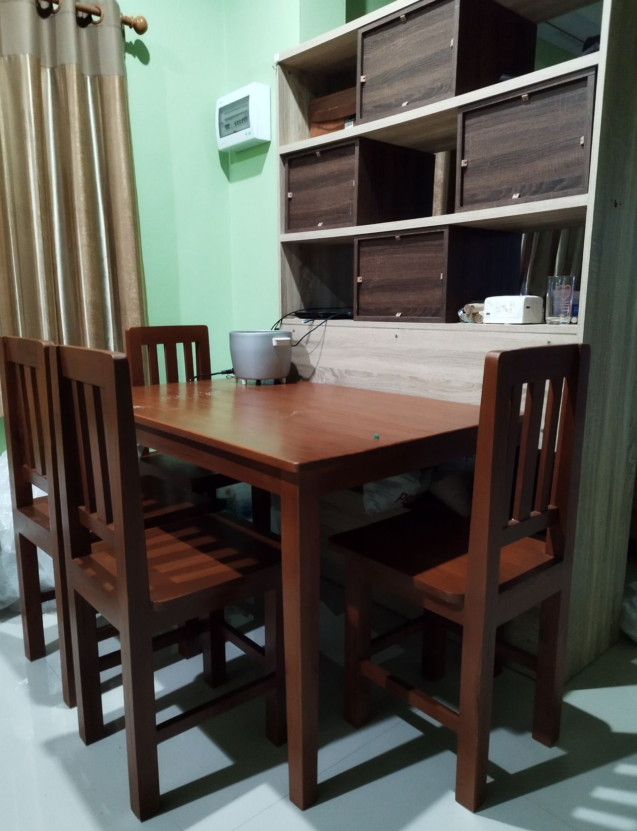 - 1 very large kitchen 40 square wah with a set of teak dining tables for 4