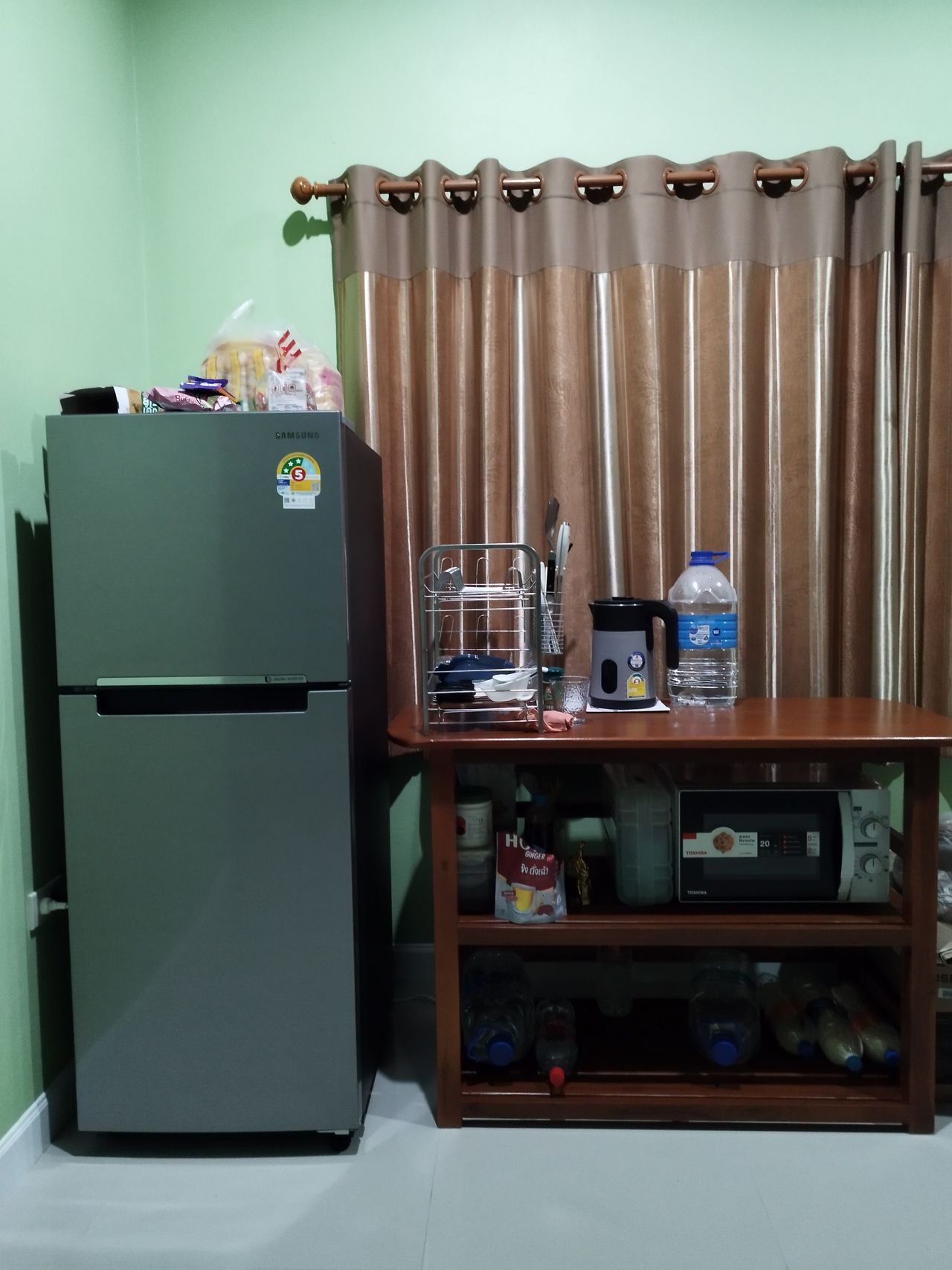 2 ตู้เย็น , ไมโครเวฟ , หม้อต้มน้ำร้อนไฟฟ้า , พัดลม , หม้อหุงข้าว , เตา