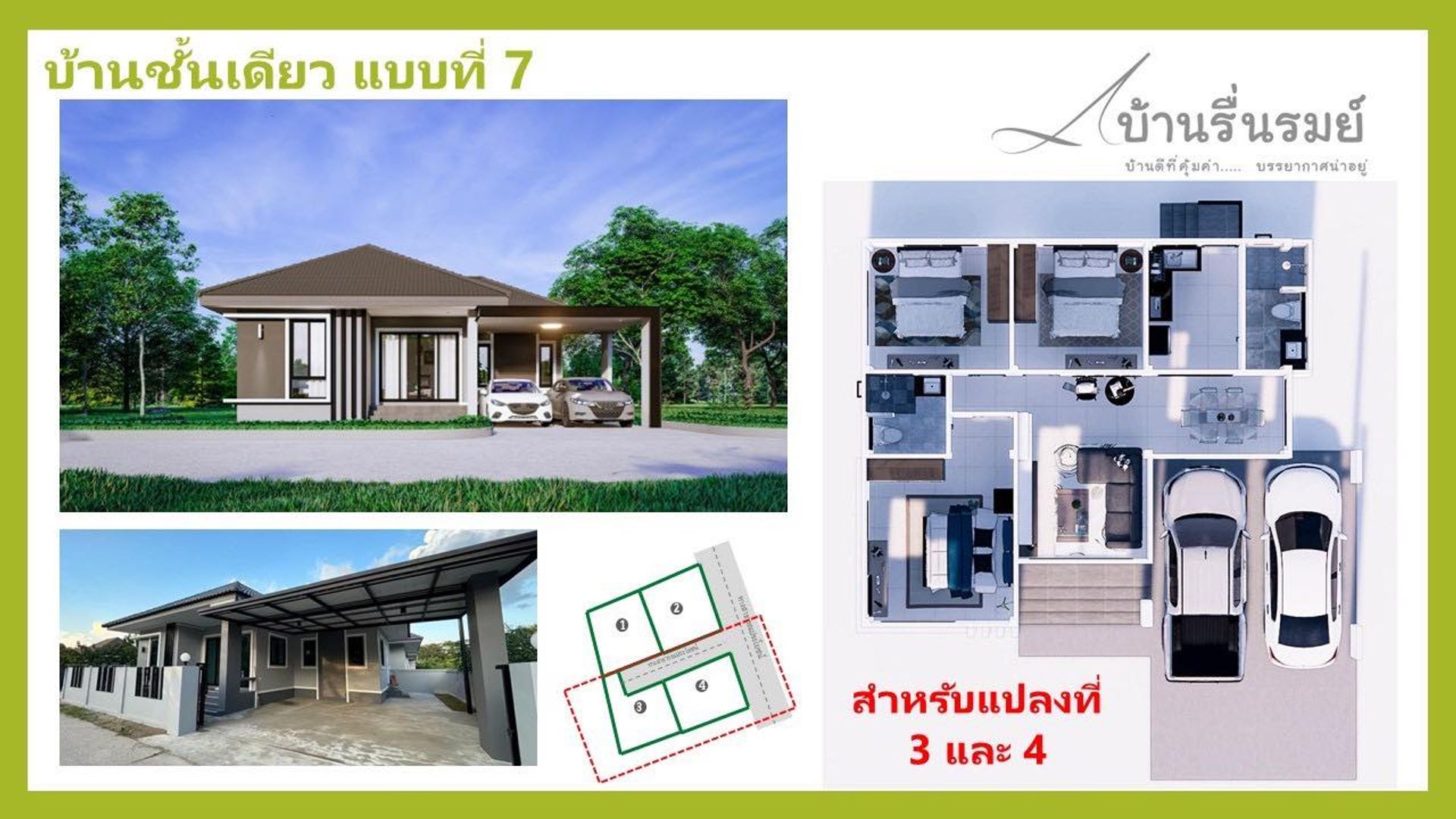 บ้านรื่นรมย์ เฟส 9 หัวฝาย บ้านเดี่ยวชั้นเดียวในเมืองเชียงราย