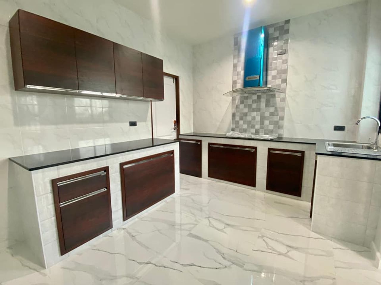 ห้องครัวถูกออกแบบให้มีขนาดกว้างขวาง พร้อมเคาน์เตอร์ครัวและอุปกรณ์ครบครันที่เหมาะสำหรับการทำอาหารอย่างสะดวกสบาย รวมทั้งยังมีพื้นที่เพียงพอในการจัดเก็บของใช้ในครัว