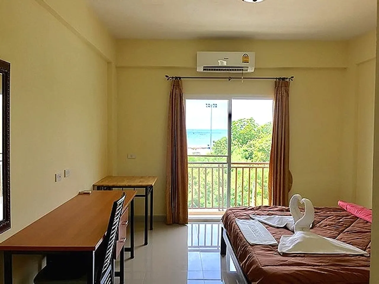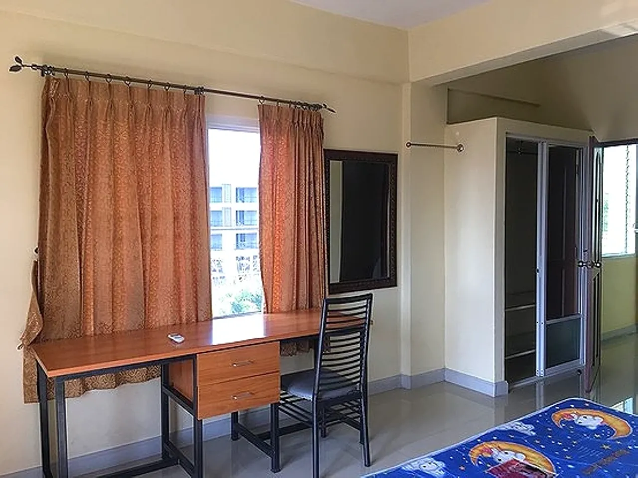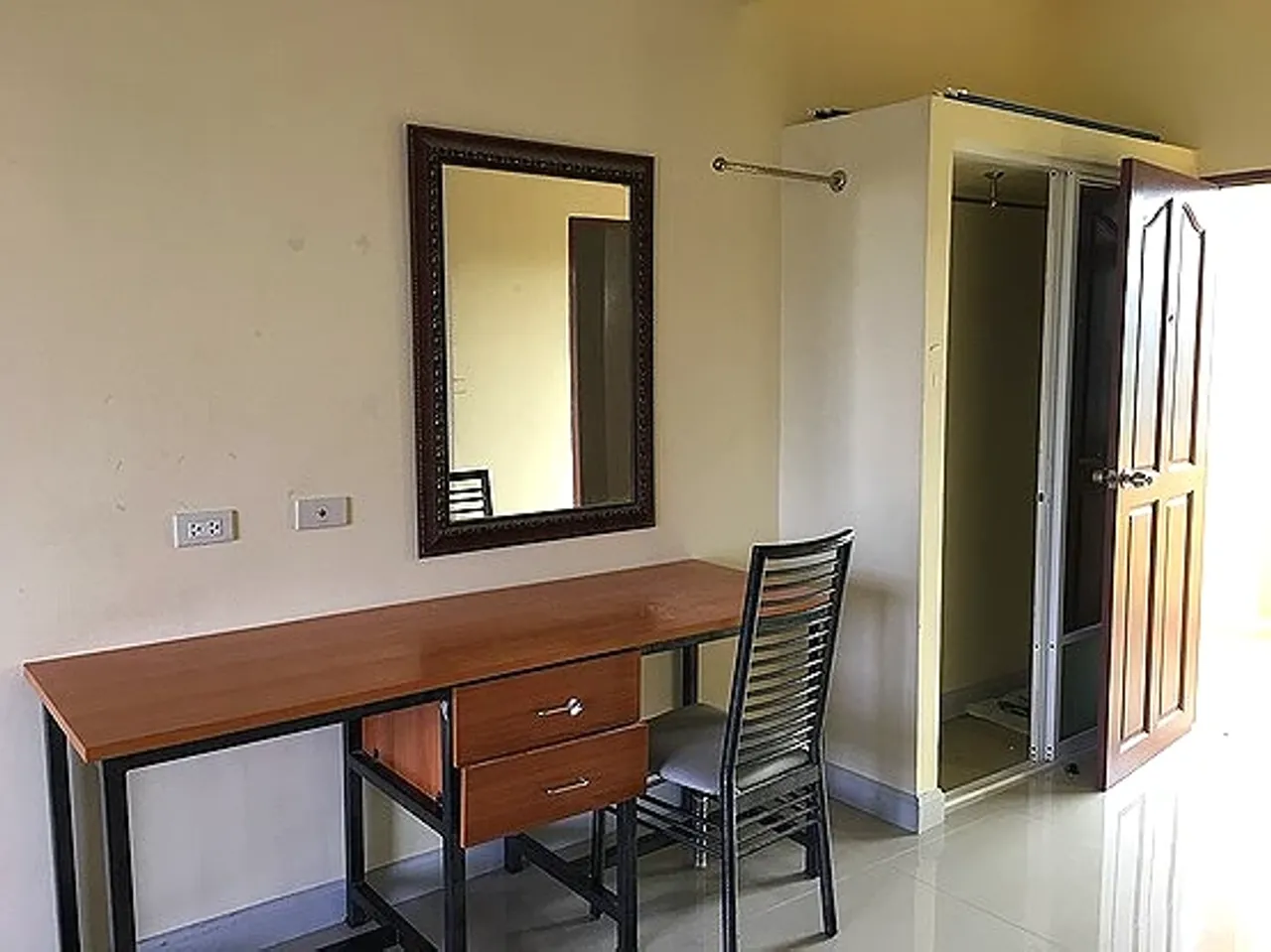 ตกแต่งด้วยเฟอร์นิเจอร์ที่ลงตัว ทั้งโต๊ะเครื่องแป้ง โต๊ะเขียนหนังสือ เตียงนอน ที่นอน6ฟุต