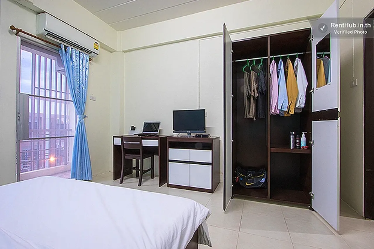 ตู้เสื้อผ้า, โต๊ะอ่านหนังสือ, ชั้นวาง TV, TVจอแบน, แอร์, พัดลม, ตู้เย็น ทันสมัย สะอาด สวยงาม free wifi, cable TV online , ที่จอดรถยนต์และมอเตอร์ไซด์ ไม่มีค่าส่วนกลาง