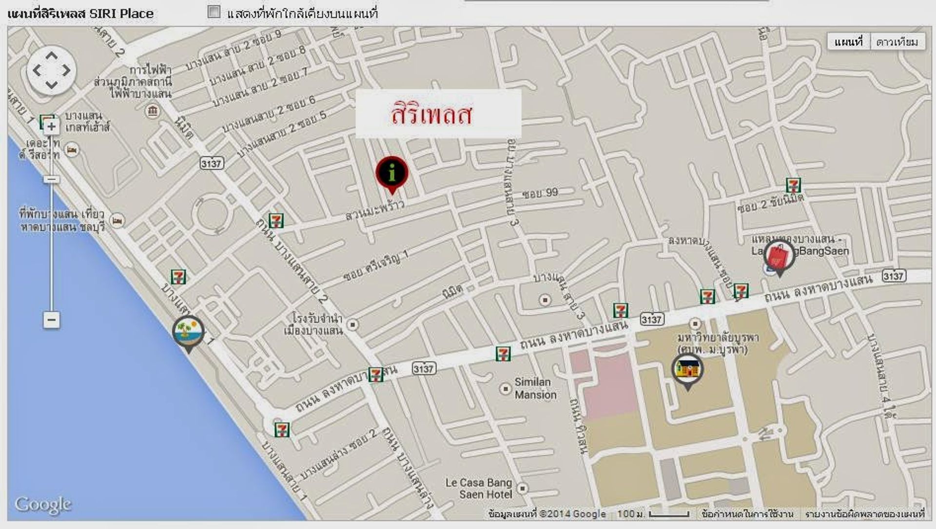 สิริเพลส (Siri Place) อพาร์ทเม้นท์ 18 ห้อง เปิดให้บริการห้องพักรายวัน ตั้งอยู่ใกล้กับแหล่งท่องเที่ยว ชายหาดบางแสน เขาสามมุข โรงพยาบาล มหาวิทยาลัยบูรพา ห้างแหลมทองบางแสน เทศบาลแสนสุข สถานีตำรวจภูธรแสนสุข ตลาดหนองมน ฯลฯ