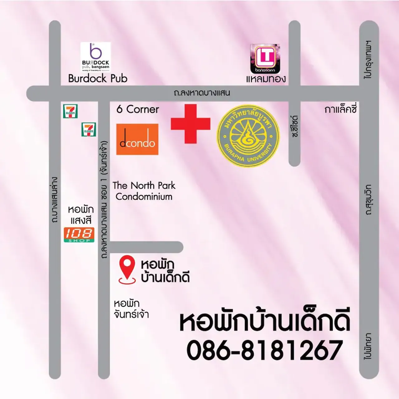 ข้อมูลเพิ่มเติม หอพักบ้านเด็กดี(หอหญิง และ หอรวม)หน้าม.บูรพา-ใกล้ประตูคณะแพทย์ ID Line:@burapharoom
