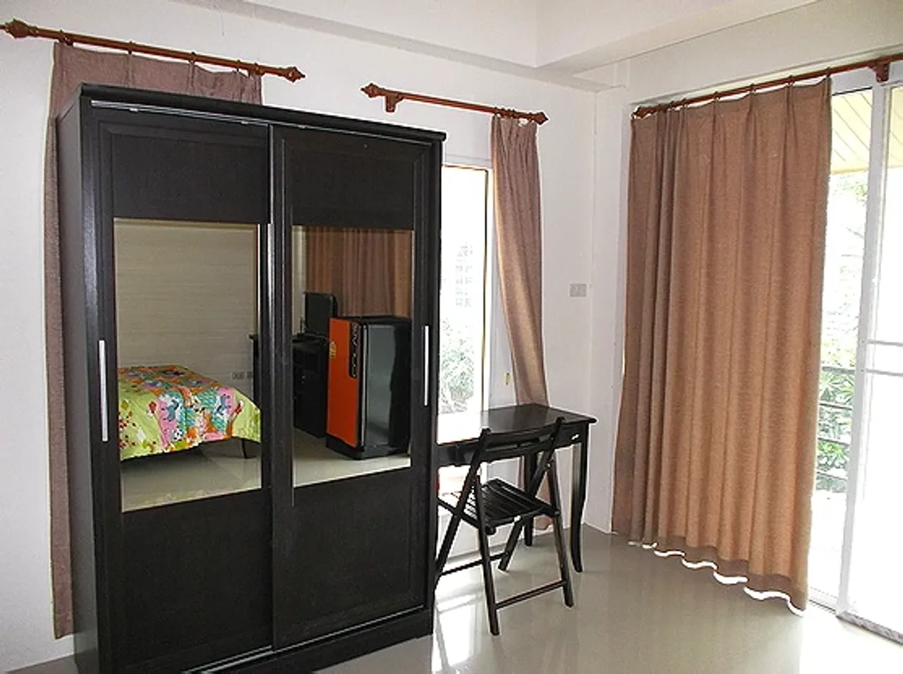 #ห้องพักกว้างขวาง สะอาด โปร่ง ไม่แออัด มีหน้าต่างบานใหญ่ และระเบียงทุกห้อง เย็นสบาย อากาศถ่ายเทสะดวก