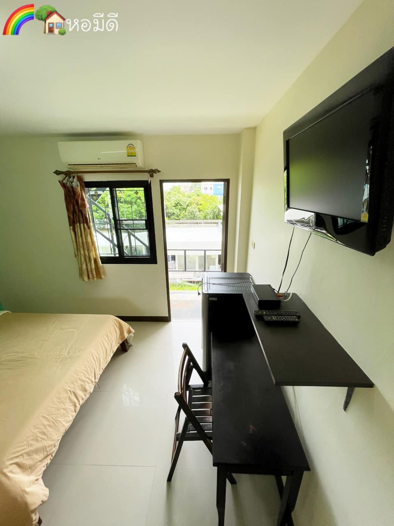 #ห้องพักกว้างขวาง สะอาด โปร่ง ไม่แออัด มีหน้าต่างบานใหญ่ และระเบียงทุกห้อง เย็นสบาย อากาศถ่ายเทสะดวก