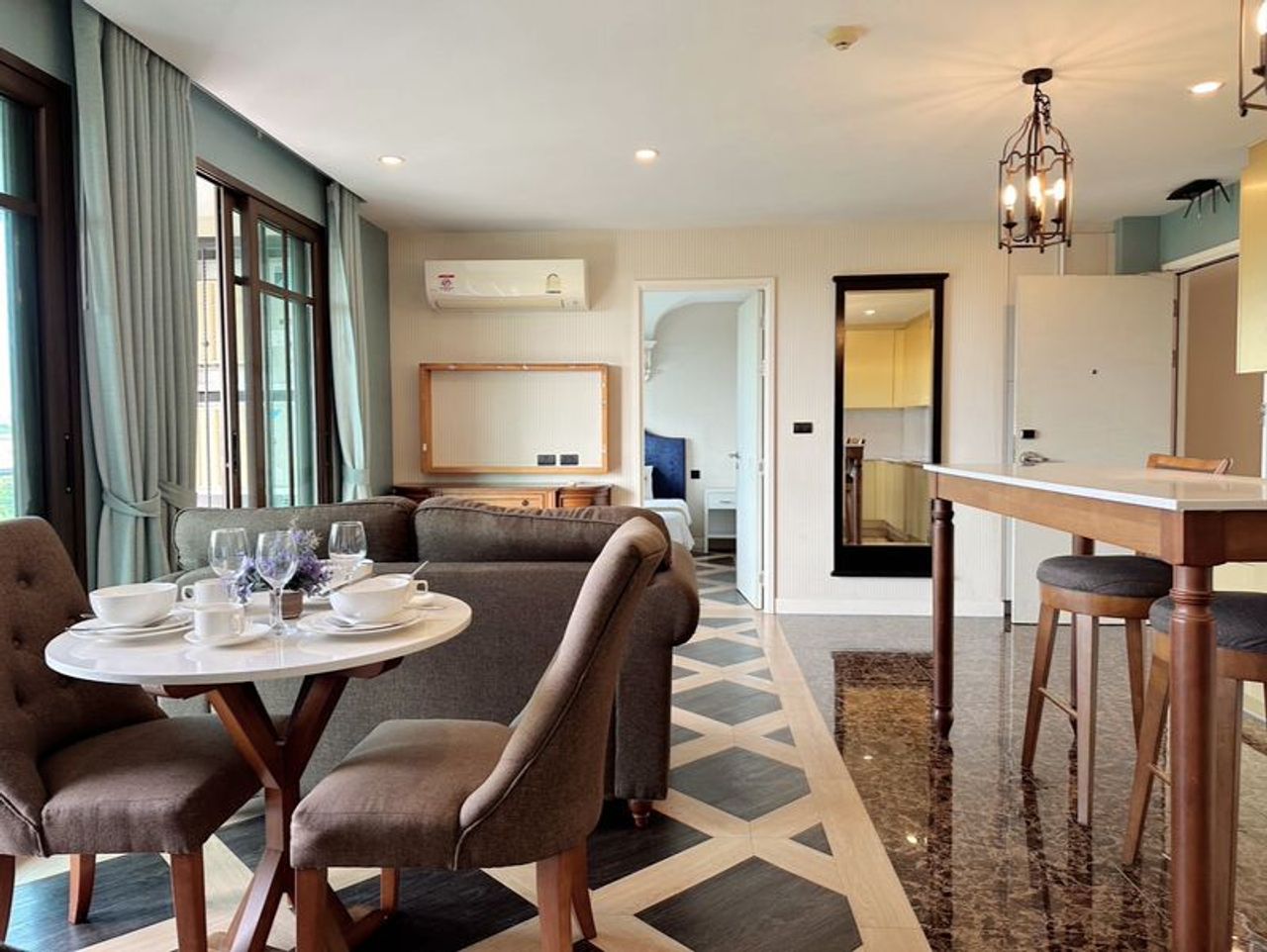 Spanish-style luxury condo in a prime Jomtien location. Close to the beach, easy access to transportation, and full facilities including pools, gym, gardens, and more.
