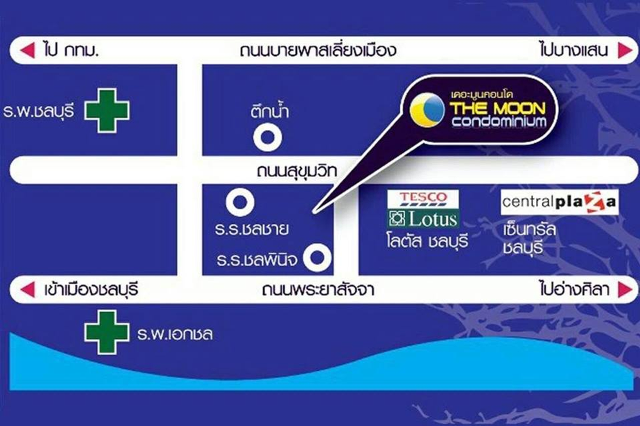 ที่ตั้ง : ทรัพย์เป็นคอนโด เลขที่ 126/434 ชั้น 2 ตั้งอยู่อาคารชุดเดอะมูน คอนโดมิเนียม ทางไปที่ตั้งทรัพย์จากถนนสุขุมวิท (ทล.3) กม.ที่ 96+705 เข้าถนนซอยบ้านสวน-สุขุมวิท 23 ประมาณ 320 เมตร