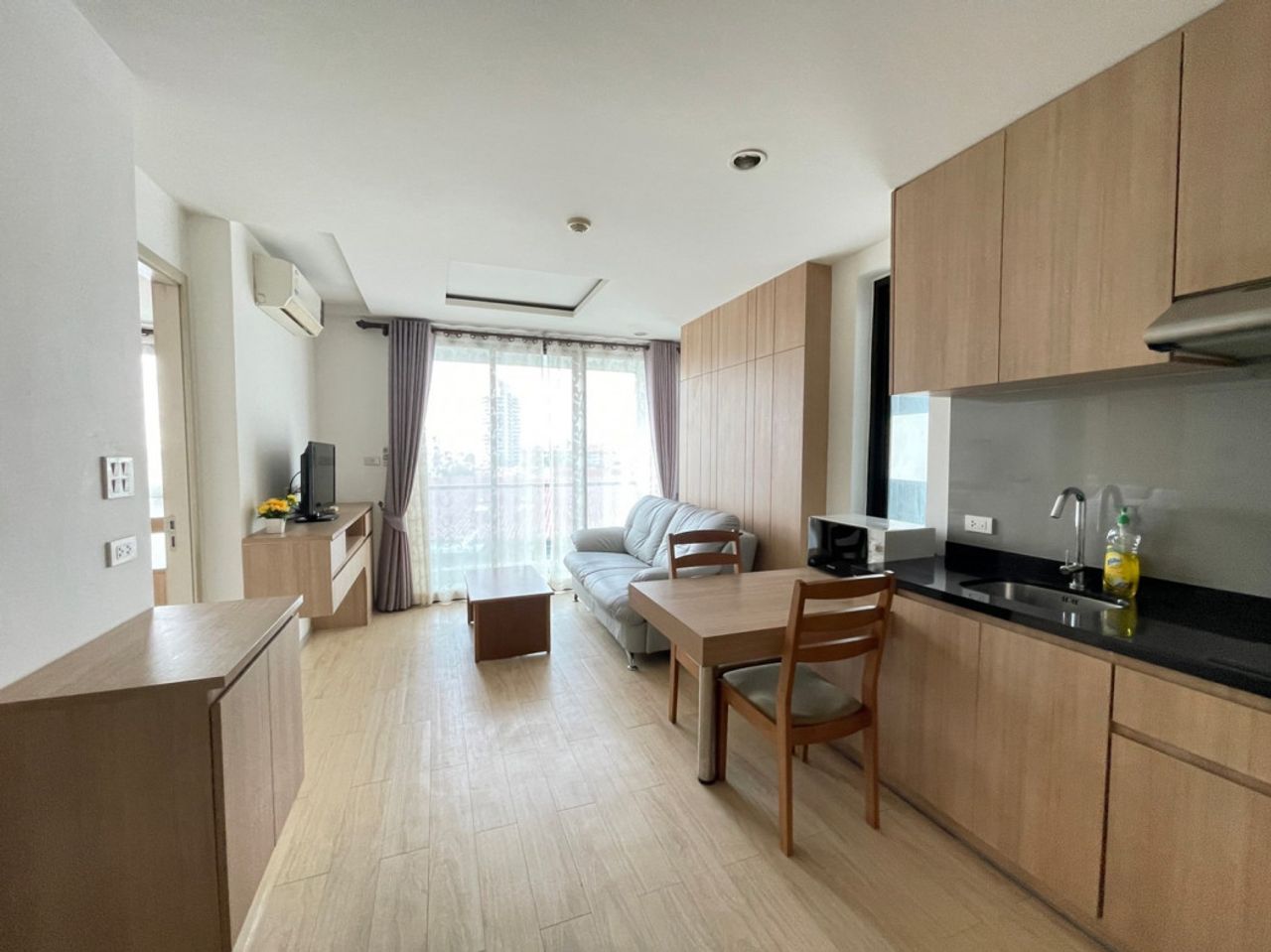 1 ห้องนอน 1 ห้องน้ำ 1 ห้องครัว มุมนั่งเล่น วิวเมือง
